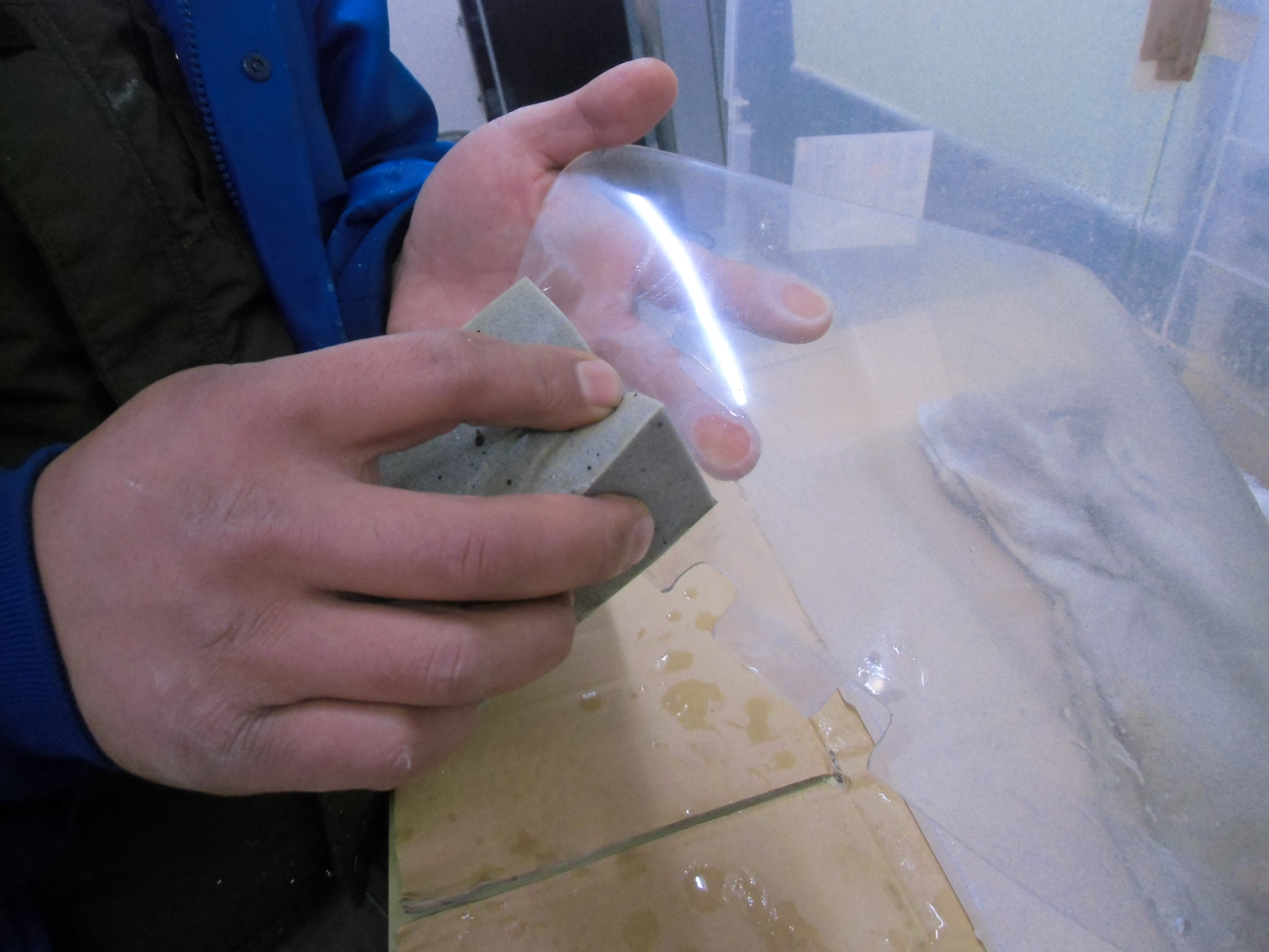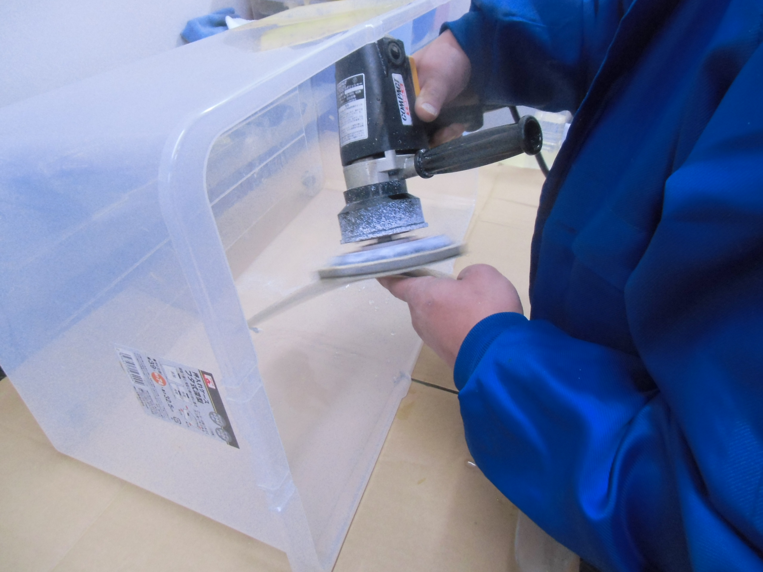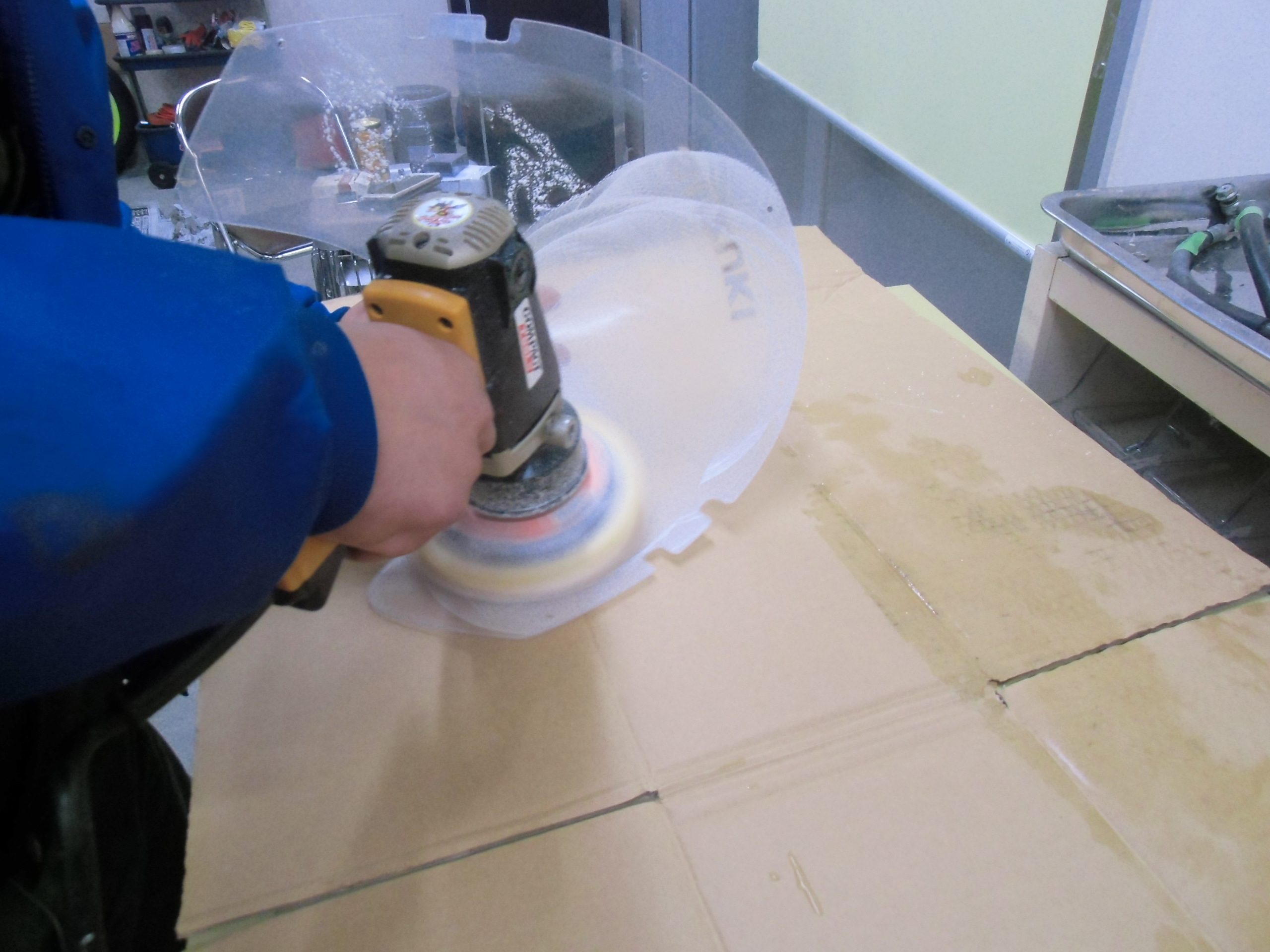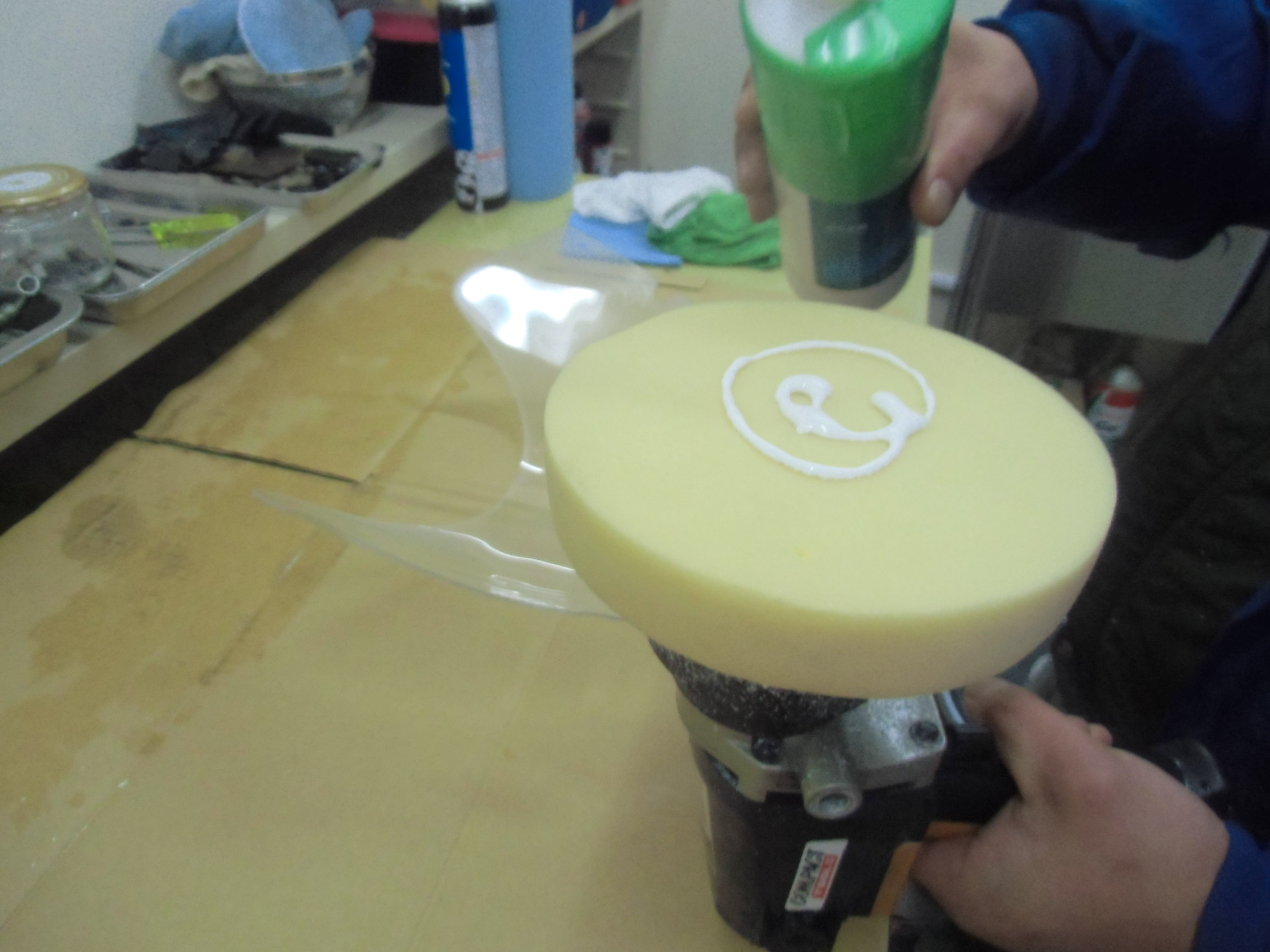 日常 2017/03/09 ガンマ F回りメンテ 其の2 こんにちは!マッシーです。今日はスクリーン編を書きます。(=゚ω゚)ノ 何十年と室内保管されていたとはいえ、完全に劣化?の影響で真っ白に曇っているスクリーン ※たばこの箱を置いて見てみると曇って見えません(-_-;)果たして復活するのでしょうか? 知人の磨きのプロに作業してもらいました。まずは極細研磨シート(使い古しがいいみたいです)と水でポリッシュします。「劣化しているのは表側だけなので、裏面は研磨しない!」のが、秘訣だそうです。 かなり水が飛ぶので、クリアケースの中で作業! 切り込みが入っている所は、均一に研磨出来ないので、専用研磨スポンジでポリッシュ! 水のみのポリッシュでここまで綺麗になりました。少したばこの箱が見えやすくなりました(=゚ω゚)ノ 次にスポンジを取付け、専用ケミカルで磨きます。 裏面も磨きます(=゚ω゚)ノ磨き終えたスクリーンを専用のウエスで拭きあげると・・・・・ ここまで透明感が復活(=゚ω゚)ノ やっぱりプロの方は凄い (;゚Д゚) 早速カウルに取付ました 。ついでにカウルも磨いてもらいました。ツヤが復活していい感じです!今回の作業工賃は、「缶コーヒー」と「肉まん」(-。-)y-゜゜゜いつもありがとうございます (>_<) にほんブログ村[2回]