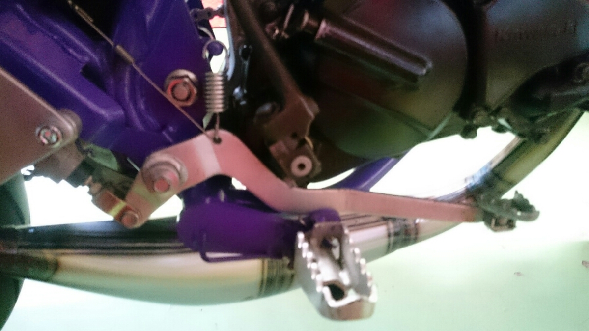 日常 2017/06/03 Kawasaki KSRⅡ その後... ご無沙汰しております。CEOですm(__)mブログアップをずいぶんとサボッておりましたが、その間にKSRⅡをチョコチョコと弄っておりましたので、ご紹介いたします。まず、シートなんですけど経年変化でいくら磨いても綺麗にならない..... 画像では綺麗に写りますが、納得できるはずもなく.....以前に用意しておいたスペアのシートを(ノーマルは大事に取っておきます) 張り替えるべく、専門業者に送りました。で、完成したシートがこれです。 ウ~ン、カッコいい~!こだわりのツートン仕上げ!! バイクに装着するとなおさらカッチョエエエ~~ですー('ω')ノお次はテール廻りです。お約束のフェンダーレスを装着します。 ダグアウトのフェンダーレスキット。実に財布に優しいお値段です。 ノーマルのボッテリテール。 バラして、 装着して、 シートカウル付けて完成! いや~、スッキリしましたねぇ(*‘ω‘ *)お次はついに付けましたダウンチャンバーーーーーーーーーーーーーーー!!!!! KRS(キムラレーシングサービス)のチャンバー。装着の図 これだ!これだ!コレダアー!!!!!ダウンチャンバー、やっぱりカッコイイですぅぅぅ~(*'ω'*)装着後、エンジン始動ーーーーー!ありゃ?静かです、下手するとノーマルより静かかも.....音的には物足りない感がしないでもないですが、良しとしましょう!オトナはジェントルなサウンドがお似合いですからねぇ.....あとやり残したのは?ステップです。ノーマルはなんともいえない中途半端なポジションで、どうしようかと思いましたが、思い切ってバックステップに交換です!先ずはノーマル画像 コストダウンありありの残念なステップであります.....そして、装着したバックステップ! 素晴らしすぎるクオリティー(=゚ω゚)ノポジションもバッチリ!KSR先人である友人も同じメーカーのものを付けてますが、自分のステップの方が仕上がりが遥かに良いらしい。メーカーさんも改良してるのですね(^o^)丿最後に、このステップを付けるとノーマルキックアームが使えなくなります。その為、純正流用で対処するのですが、 右の短いのがノーマルキックアーム。左が純正流用のAR80用キックアーム。これにしないとステップにキックアームが干渉してNGであります。ノーマルの加工もできるようですが、大変そうなのでこれ付けました。まぁ、このような仕様で現在楽しんでおりますー(^o^)丿これでKSRⅡについては打ち止めかなぁ?たぶん.............m(__)m にほんブログ村[3回]PR