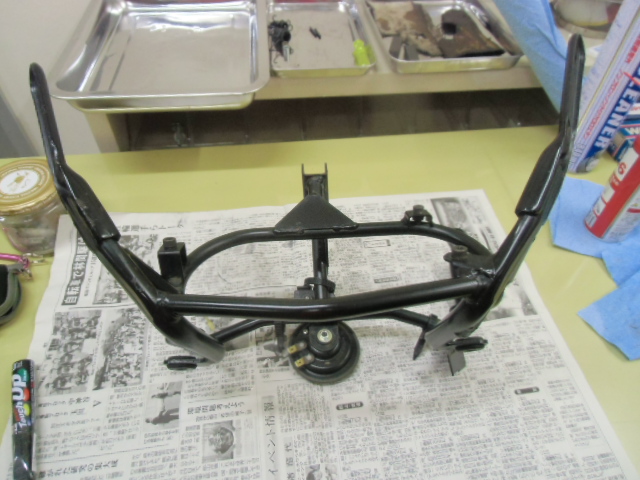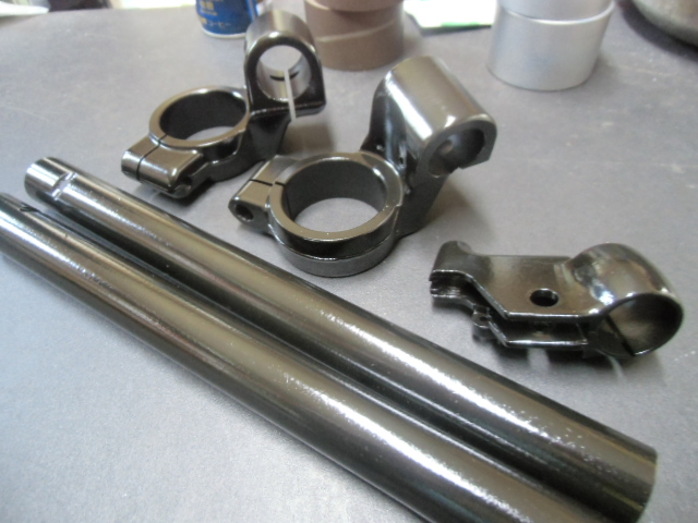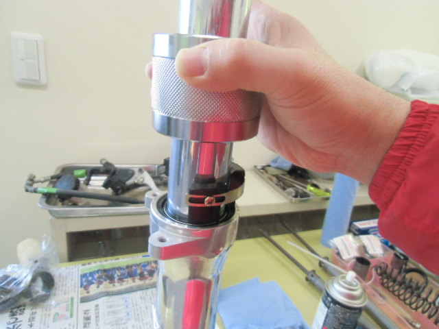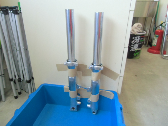 日常 2017/09/14 ガンマF回りメンテ 其の5 こんにちは!マッシーです。相変わらず作業が進んでいません (-_-;) ペプシガンマ・・・随分前に組み上げたFフォーク(今年の3月)の事を書きます。点サビだらけのインナーチューブを再メッキする為、「㈱東洋硬化」に出してから約1ヶ月後に戻ってきました。ドキドキしながら・・・箱を開けて中身を確認! 眩いばかりの美しさに感動です (゚Д゚)ノ 検査表を確認すると・・・「受け入れ時」 「行程・出荷時チェック」 とても丁寧な仕事をしていただきありがとうございます。(=゚ω゚)ノ オイルシールプレッシャーをCEOさんにお借りして、いざ!(゚Д゚)ノ 組立開始 運良くFフォークO/H に必要な純正パーツは全部出ました さすが!スズキ 様 (゚Д゚)ノスライドメタルは、使えそうでしたがこの際なので交換しました。 オイルシールプレッシャーを使いオイルシールを打ち込みます。その他部品を組み フォークオイルを入れます。 Fフォークをガムテープで貼り(垂直?)固定 当時はSHOWAオイル指定でしたが、今回はスズキ純正品を投入エアー抜き・油面調整などを行い ペプシガンマはSP仕様なので「フルアジャスタブル」を組みます。 ようやく完成!(゚Д゚)ノ 次に市販のソフト99「艶消しブラック」で、メーターステーのタッチアップ(手抜き)作業します。 磨けば十分綺麗になったのですが、溶接部分等にザビが発生!隠れて見えない部分ではありますが、やっぱり気になります。 塗ると写真のように、ツヤが出て元の色との差が出てしまった!と思いきや数時間経つと・・・ ツヤが抜けていい感じに仕上がります。試す価値ありです!(=゚ω゚)ノ 次に塗るパーツには、この機械を使用します! ハンドル・レバーホルダーを「ガンコート塗料」で塗り最後に高温にて「焼付け」します。 こんがり?焼けて出てきました。文句無しの出来栄えです。※この作業はグリーンワールドにて作業して頂きました。(*^^)v ようやく各部品が揃いましたので、組立に入ります。 以前購入してましたマスターも取付 ガンコート仕様ハンドルとおNEWマスター最高の眺めです(p_-) フロントタイヤを付けて完成!って訳にはいきません!!レストア資金が底をついたので、この先へは進めません(-_-;)タイヤ・ホイールの塗装・ブレーキホースなどなどまだまだやる事多し!!(ノД`)・゜・。ひとまず今年はこれにて終了?かなもう一台のカブもやらないといけないし・・・・(-_-;) にほんブログ村[6回]PR