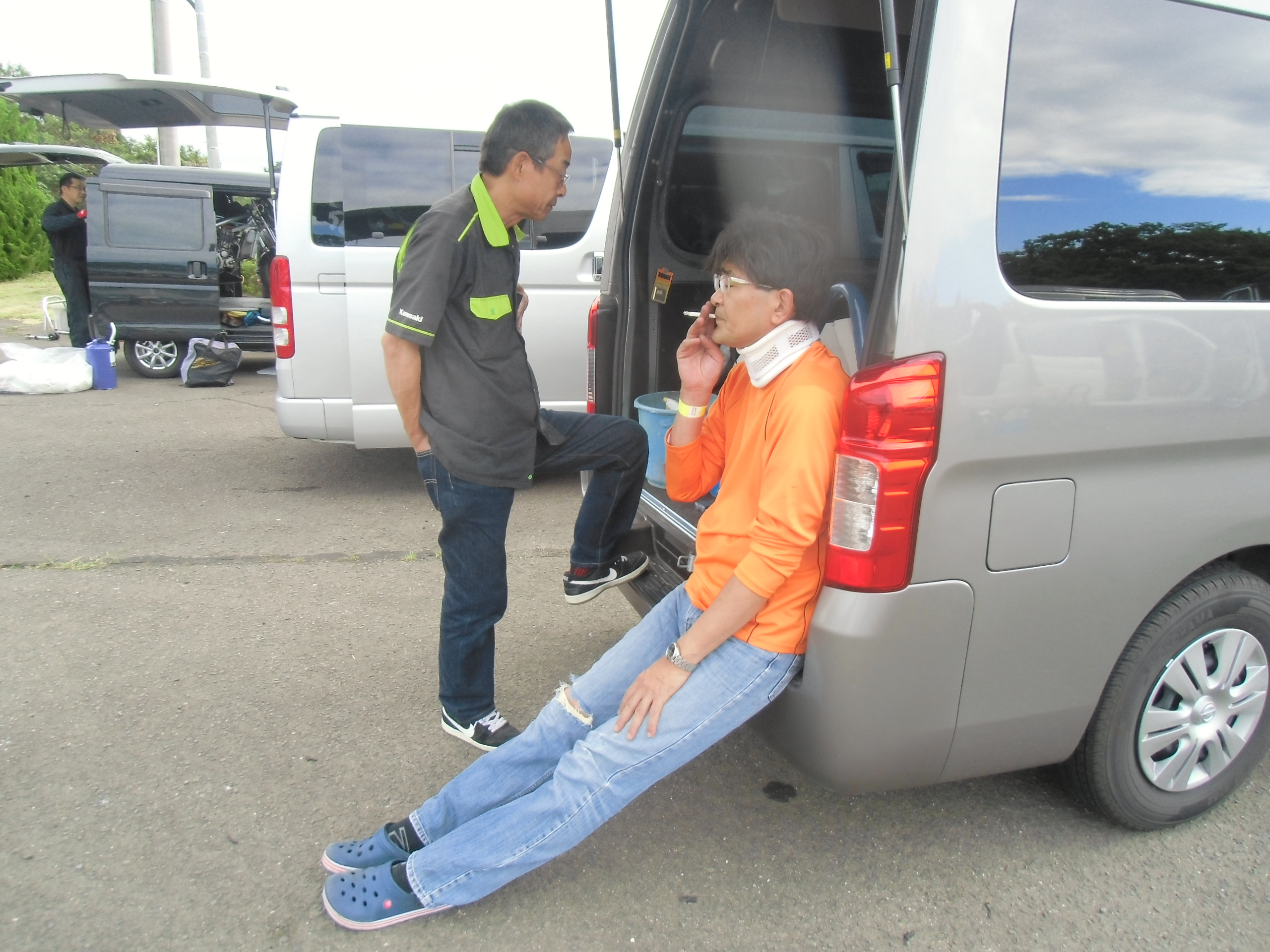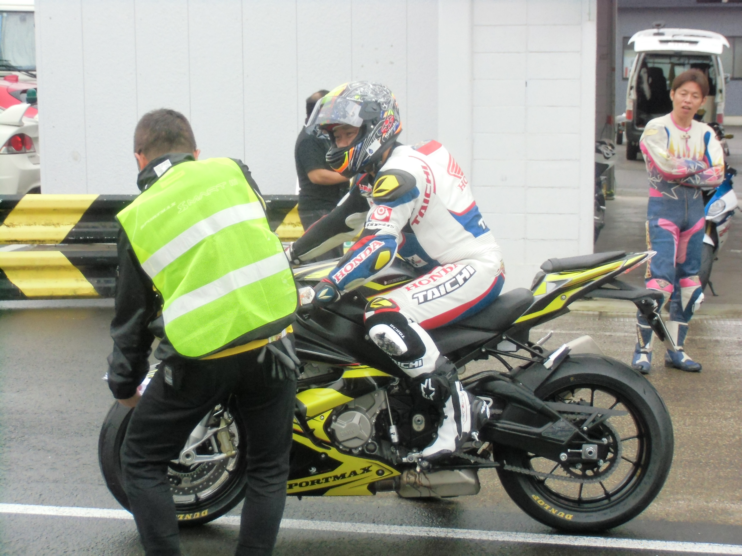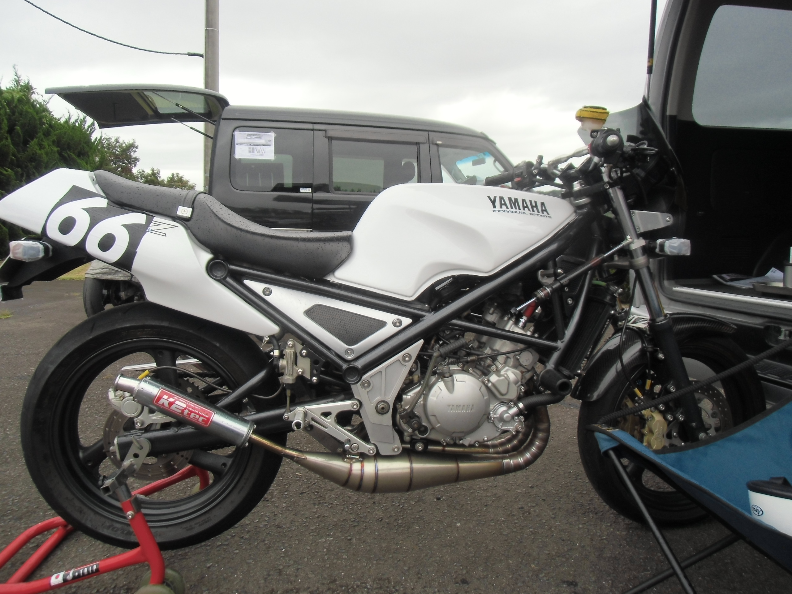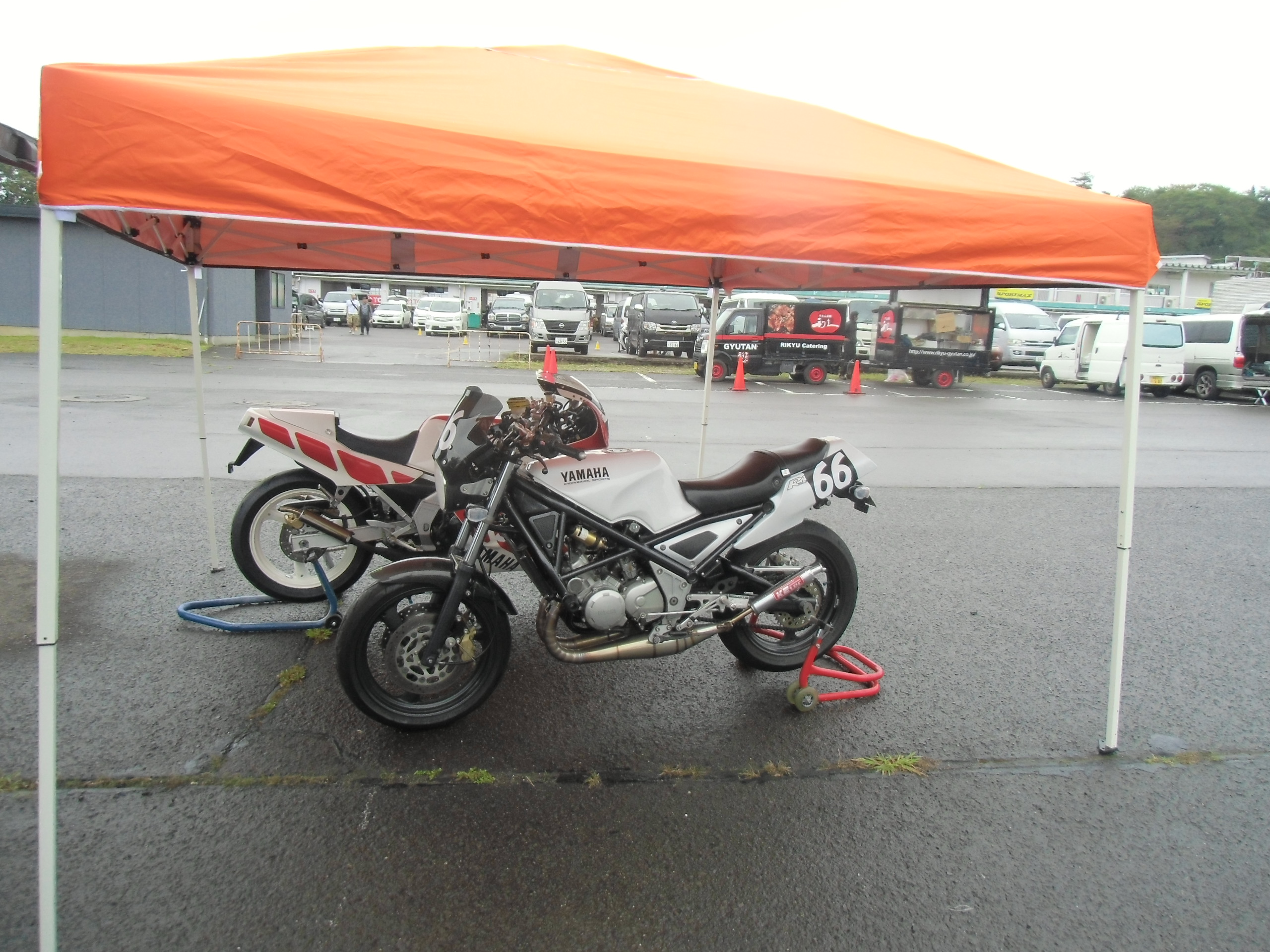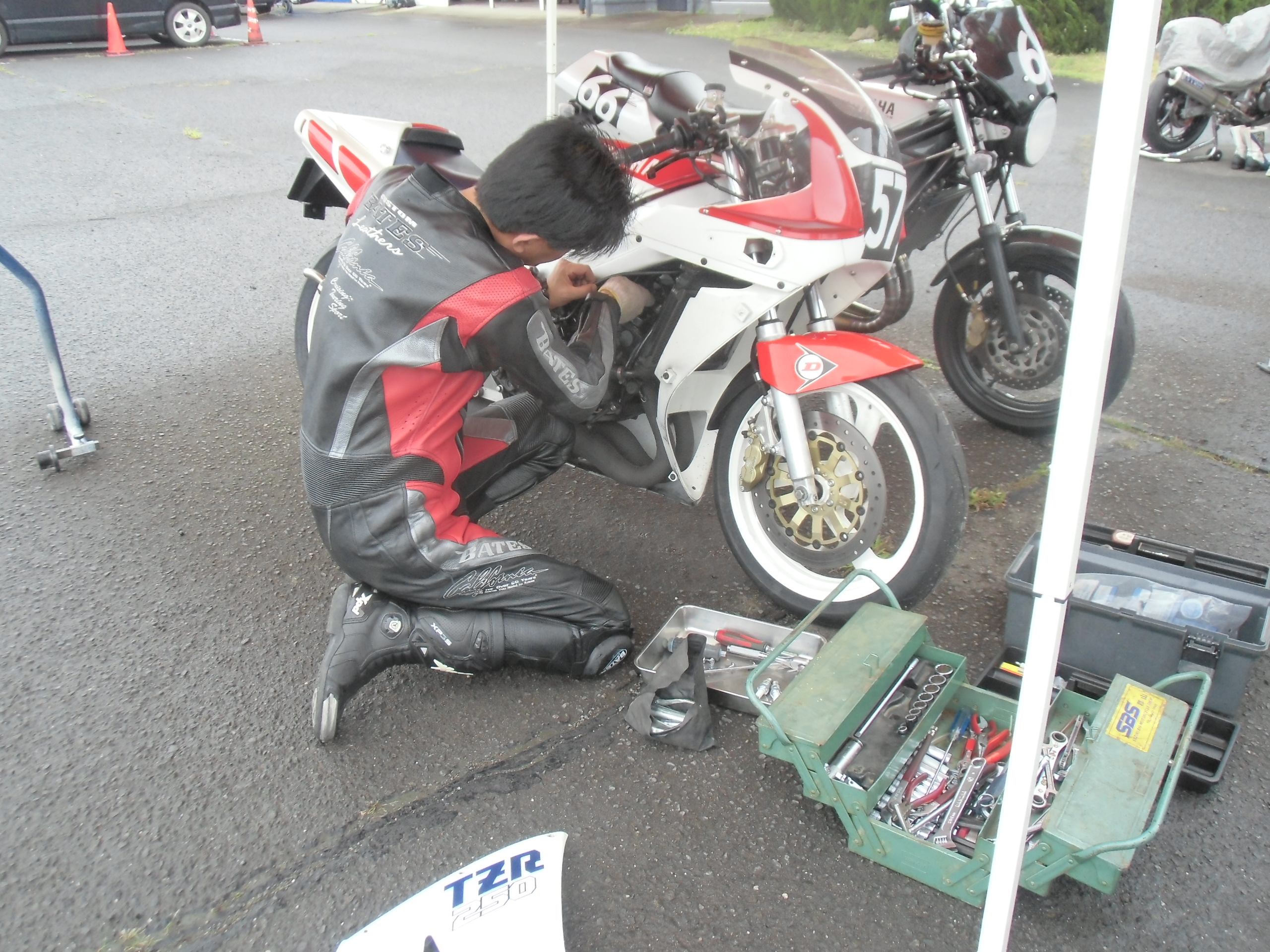 日常 2017/09/08 雨男 こんにちは!マッシーです。先日「ダンロップサーキットステーション」in スポーツランドSUGOへバイク仲間3人で走行会に参加してきました。走行前に軽整備やエンジンの調子などチェック! ミドルパワー「Mクラス」で走る TZRとR1-Z※私は2人のサポート役で参戦 (-_-;) 走行前に止んでた雨が降り出しましたこの3人の誰かが「雨男」なのか?(゚Д゚)ノ 去年この3人でSUGOに来た時も雨でした (-_-;) TZRオーナーの知人さんも偶然参加しており、テントを貸してくれました。これで何とか雨はしのげます。(/・ω・)/ ハイパワー「Hクラス」1回目の走行相変わらず雨は止まず、コースはウェット状態 特別ゲストとして、国際A級ライダー秋吉耕佑選手がマーシャルで参加! TZRは1回目の走行から帰って来るや否や「上が回らん~(; ・`д・´)」と早速各部チェック!実は走行前に何故か?キャブ1基がオーバーフローしてました。「電気系統?」「燃料系?」などなどチェックしましたが、原因分からず? プラグを外すと・・・オーバーフローしたキャブ側のプラグがカブってました。(。´・ω・)?新品のプラグに交換し再度チェックアクセルを回すと、ちゃんと上までフケ上がります!原因はプラグと判断し再度走行会へ (゚Д゚)ノその後の結果は次の写真がよく物語っております。 前回に引き続き不完全燃焼な1KTさん後日、原因が判明! キャブレター油面が低く上で燃料が足らず 、スピードが出なかったみたい?です。 R1-Zさんは、ガラガラの抽選で 見事?「うまい棒」をゲット(゚Д゚)ノマシントラブルもなく走行会を満喫したようです! にほんブログ村[3回]