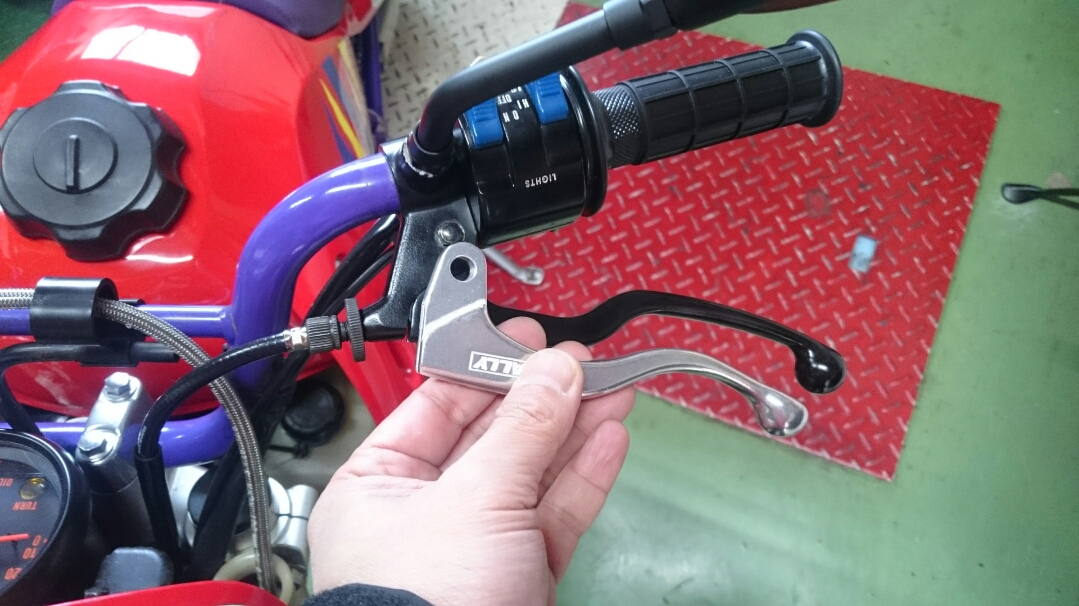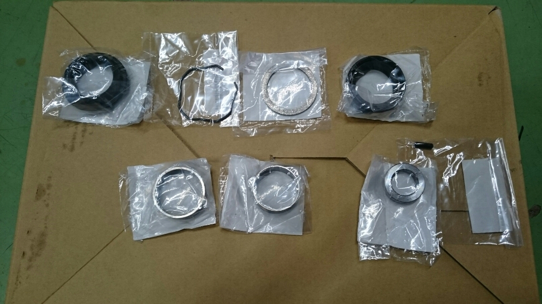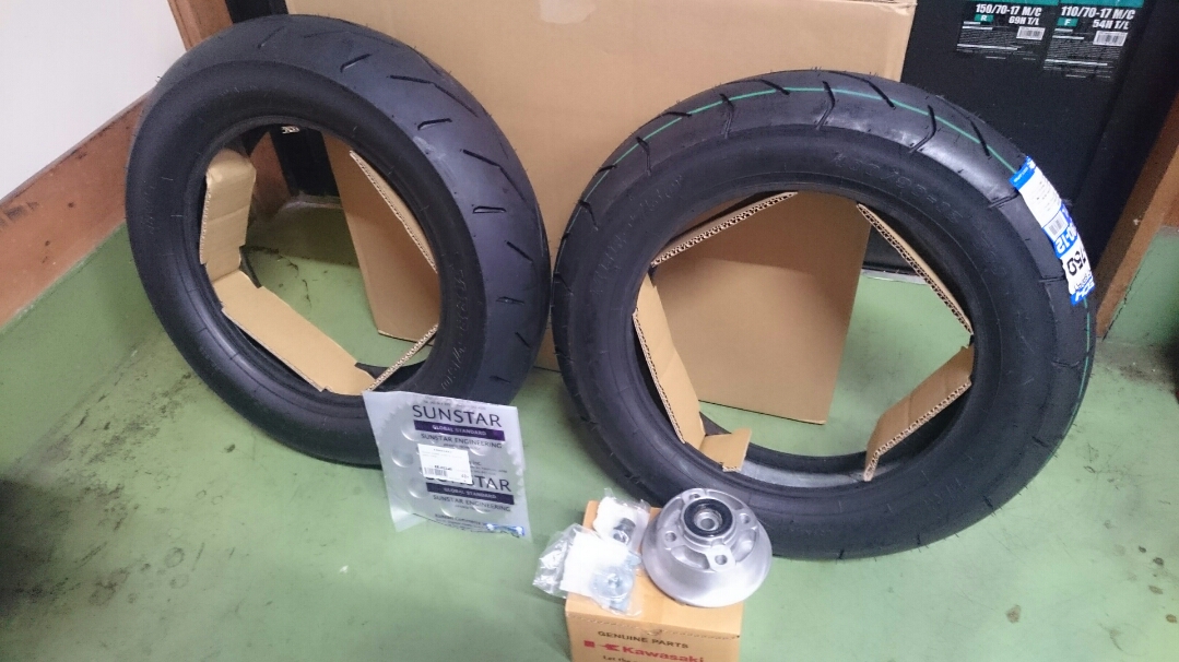 日常 2016/11/05 Kawasaki KSRⅡ 完全復活!! こんにちは、CEOです(・ω・)ノ9月にゲットしたKSRⅡですけど、この2ヶ月の間復活させるべく色々と手を加えておりました。先ずは、とにかくきれいにしないと納得できませんので、あちこちバラしながら必死こいてシコシコしてました。とにかく、オイルと泥にまみれてやりがい?がございました(疲れた.....)。特に、エンジンの手が届かないところが酷い状態だったので、スイングアームを外して綺麗にします。 ↑↑キタネェです( 一一)で、とにかく磨いて↓↓ 見違えるほど綺麗に(*'ω'*)あと一番汚いところと言えば、ドライブスプロケットまわりなんですね。 お約束のデロデロ状態です.....しか~し、吾輩の手にかかれば、 ピカピカになりました。勿論、スプロケットはこの後新品を入れました(-ω-)/次に手を加えるのは、フロントフォーク。 よく見るとなんかオイリーなんですよ。オイルシールが抜けてキャリパーもオイルまみれ。オーバーホール決定です.....( ;∀;)パーツが揃ったので早速始めます。 車体から外して、 フォークオイル抜いて、 全バラです。 インナーパーツ組み付けの図。 はい、2本とも完成。 車体に取り付けて完了です~(*'ω'*)これである程度完成したので、お役所様に足を運びナンバー取得して参りました。早速、試乗したのですがなんかおかしい???クラッチ、滑ってます.........エンジンだけ元気よく回って加速しない~(/ω\)しかたねぇ.....今度はクラッチ修理だ.....せっかく入れたフレッシュなミッションオイルとラジエタークーラントを抜きます.....(トホホ.....) 固着したクラッチカバー外すのに時間がかかりまして、途中の画像はございません。へばりついたガスケット除去にもえらく時間がかかりました.....さて、新品のクラッチプレート、フリクションプレート、クラッチスプリングを組んでいきますが、このKSRⅡのクラッチ滑りの元凶はクラッチスプリングに原因があるようです。したがって、ノーマルスプリングにプラス、強化スプリング(モトクロッサー KX80用)を組んでいきます。 左がヘタった今までのスプリング、真ん中が新品ノーマルスプリング右がKX80用強化スプリング。左のスプリングがヘタっているのが良く解りますね、真ん中のノーマルスプリングと長さが明らかに違います。右の強化スプリングも短く見えますけど、バネレートがまるで違います。手でテンションを確かめると、硬くて実にいい感じです。これでクラッチ滑りとはおさらばですなぁ(^o^)丿 KSRⅡのクラッチにはスプリングが6個入りますので、ノーマルと強化を3個ずつ交互に入れてクラッチ強化しました。 組み込み完了の図です。このクラッチオーバーホルのおかげで、今度は滑りもなく気持ち良~く加速するようになりました(=゚ω゚)ノそれほど手を入れなくても普通に走りますよってなことでしたけど、そうは問屋が卸しませんねぇ。でもまぁ、これでバッチリでしょう!でもですね、自分はこれで満足しないんですなぁ(;^ω^)そんな訳で、カスタム第一弾~! これ、買っちゃいました。 アルミホイールです(=゚ω゚)ノだって、ノーマルホイールって鉄チンで重いしカッコ悪いし.....よって、純正流用チューンであります(なんと、エンケイ製!)。このホイール、2011年型KSR110のノーマルホイールなんですね。どこぞの高級アルミホイールの四分の一以下のお値段で買えるんです!KSRⅡにはリヤハブカップリング、両サイドのカラー、ドリブンスプロケットを交換すればポン付け出来るんです(*'ω'*)因みに、フロントホイールは完全ボルトオン!最高です。当然のようにタイヤもおニューをかまします。 タイヤと組み込みに必要なパーツ。 タイヤを組んで(最近、慣れました.....(爆))車体に組みます。ノーマルホイールとの違いを見てみましょう。 ノーマルフロントホイール KSR110フロントホイール(カチョエェ~!) ノーマルリヤホイール KSR110リヤホイール(きまってるぅ~!)リヤタイヤはサイズ(太さ)もアップしてますよ! う~ん、シブいぜ(*´ω`)まだ続きます。KSRⅡの弱点の一つに、フロントブレーキの効きが悪いことが挙げられます。 ショボイ方押し1ポットキャリパー、カッコも悪い.....問答無用で交換です! これなんですけど、リーズナブルに制動力を解決するべく、これまた純正流用であります。これもモトクロッサーKXのパーツであります。 組むとこんな感じに。これも見てくれは断然カッチョエェです(*'ω'*)肝心の効きは?少しは良くなったかなぁ.....ある程度距離を乗れば当たりが出て良くなると思います(期待しよう.....)キャリパー組むのに、ブレーキオイルのエア抜きは当然の事ですけど、その為の専用工具があるとスムーズに物事が進むのは、変態バイク野郎にはご理解頂けると思います。自分も十数年前からその工具を持ってまして、今回も使いましたが経年変化とでもいうのでしょうか、この工具がボキッ!という音とともにご臨終と相成りました。今は安いけど、当時はこの手の工具は高か