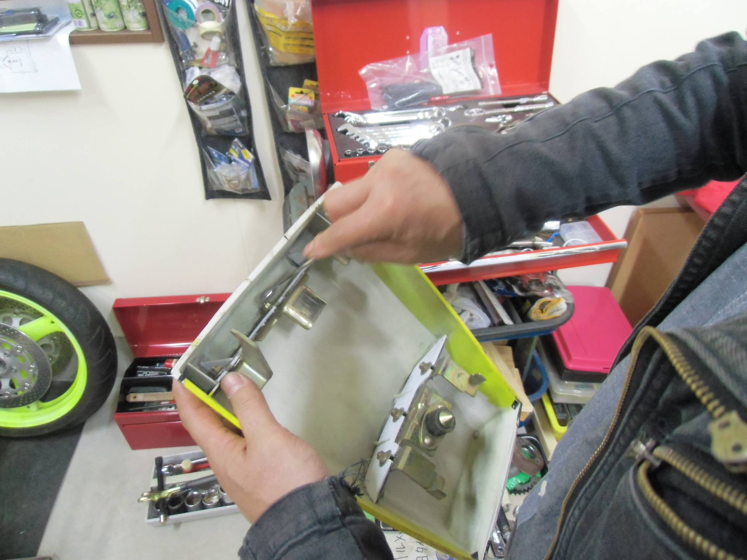 日常 2016/12/30 思い こんにちは!マッシーです。今年1年「ホテルバーデン ライダーズプラン」をご利用していただきました皆様に感謝申し上げます。来年も引き続きご利用お待ち申し上げます。<m(__)m>先日大変いつもお世話になっておりますバイクレストアショップ「グリーンワールド」へ伺った際、店主 大堀さんから、「はい!これ!」と袋に入った物を渡されました。袋の中に入っている物を取り出してみると・・・・ 私「こっ・・これは・・・・? ( ゚Д゚) 」大堀さん「以前貰ったKV75のスイッチBOX 返すよ!」 「譲った知人に渡して!」以前大堀さんにKV75のストックパーツを色々頂いたお礼にと、プレゼントしたスイッチBOXがレストアされているではありませんか!レストア前のスイッチBOX スイッチBOXは「焼付塗装」が施され、新しいビスが取り付けられてました。 スイッチBOXの中も綺麗に洗浄され、スイッチ類の動きも良くハーネス・ハーネスチューブ・キボシ・までもが、新調されておりました。以前大堀さんからKV75「スイッチBOXが無い」と聞いてた知人が、これでレストアしているKV75を完成させて下さいと、自分のKV75に付いてた物を、大堀さんへプレゼントしたスイッチBOXを使わず、レストアしてプレゼントするという「やさしさ」に感動!バイクを通じて「人に対する思い・バイクに対する思い」の大切さを、改めて感じた日になりました。(ノД`)・゜・。 最近ブログアップをサボってたいた私・・・・ちょこちょこ溜まっているガンマレストア「ブログネタ」来年もちょこちょこ?書きますので、どうぞよろしくお願いいたします。来年こそ公道デビューするぞー(゚Д゚)ノ皆様!良いお年をお迎えください ヽ(^。^)ノ にほんブログ村[8回]