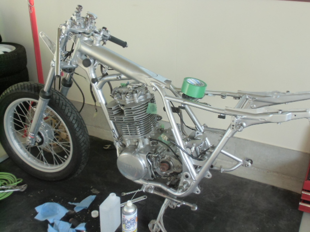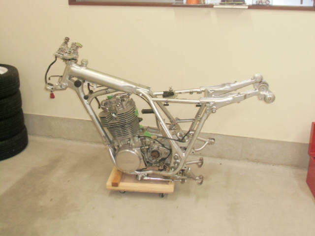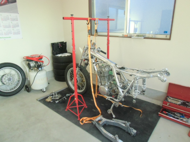 キャスター付の台にフレームとエンジンを乗せ作業終了!