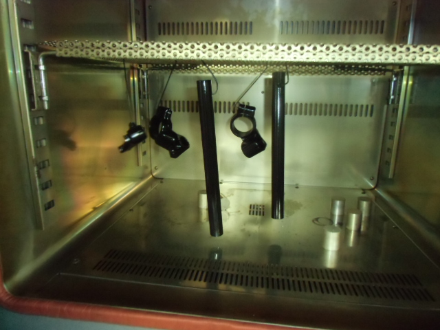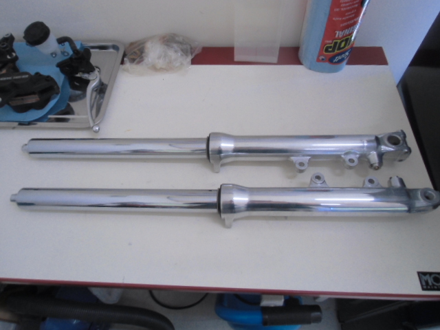 日常 2017/09/14 ガンマF回りメンテ 其の5 こんにちは!マッシーです。相変わらず作業が進んでいません (-_-;) ペプシガンマ・・・随分前に組み上げたFフォーク(今年の3月)の事を書きます。点サビだらけのインナーチューブを再メッキする為、「㈱東洋硬化」に出してから約1ヶ月後に戻ってきました。ドキドキしながら・・・箱を開けて中身を確認! 眩いばかりの美しさに感動です (゚Д゚)ノ 検査表を確認すると・・・「受け入れ時」 「行程・出荷時チェック」 とても丁寧な仕事をしていただきありがとうございます。(=゚ω゚)ノ オイルシールプレッシャーをCEOさんにお借りして、いざ!(゚Д゚)ノ 組立開始 運良くFフォークO/H に必要な純正パーツは全部出ました さすが!スズキ 様 (゚Д゚)ノスライドメタルは、使えそうでしたがこの際なので交換しました。 オイルシールプレッシャーを使いオイルシールを打ち込みます。その他部品を組み フォークオイルを入れます。 Fフォークをガムテープで貼り(垂直?)固定 当時はSHOWAオイル指定でしたが、今回はスズキ純正品を投入エアー抜き・油面調整などを行い ペプシガンマはSP仕様なので「フルアジャスタブル」を組みます。 ようやく完成!(゚Д゚)ノ 次に市販のソフト99「艶消しブラック」で、メーターステーのタッチアップ(手抜き)作業します。 磨けば十分綺麗になったのですが、溶接部分等にザビが発生!隠れて見えない部分ではありますが、やっぱり気になります。 塗ると写真のように、ツヤが出て元の色との差が出てしまった!と思いきや数時間経つと・・・ ツヤが抜けていい感じに仕上がります。試す価値ありです!(=゚ω゚)ノ 次に塗るパーツには、この機械を使用します! ハンドル・レバーホルダーを「ガンコート塗料」で塗り最後に高温にて「焼付け」します。 こんがり?焼けて出てきました。文句無しの出来栄えです。※この作業はグリーンワールドにて作業して頂きました。(*^^)v ようやく各部品が揃いましたので、組立に入ります。 以前購入してましたマスターも取付 ガンコート仕様ハンドルとおNEWマスター最高の眺めです(p_-) フロントタイヤを付けて完成!って訳にはいきません!!レストア資金が底をついたので、この先へは進めません(-_-;)タイヤ・ホイールの塗装・ブレーキホースなどなどまだまだやる事多し!!(ノД`)・゜・。ひとまず今年はこれにて終了?かなもう一台のカブもやらないといけないし・・・・(-_-;) にほんブログ村[6回]PR