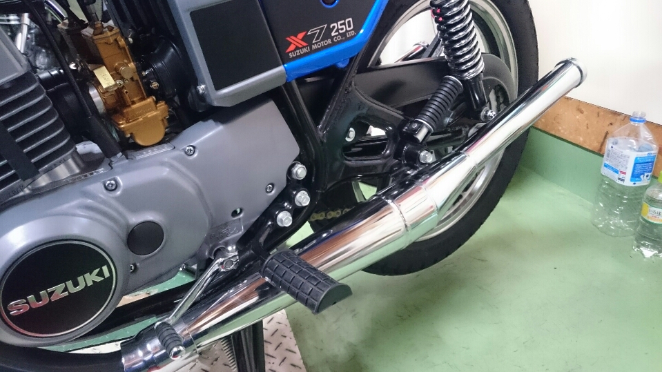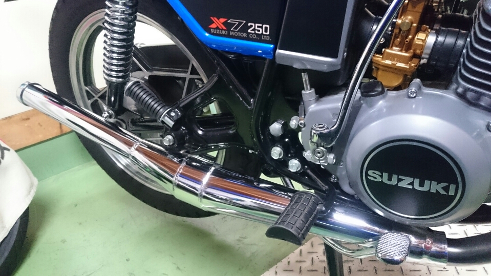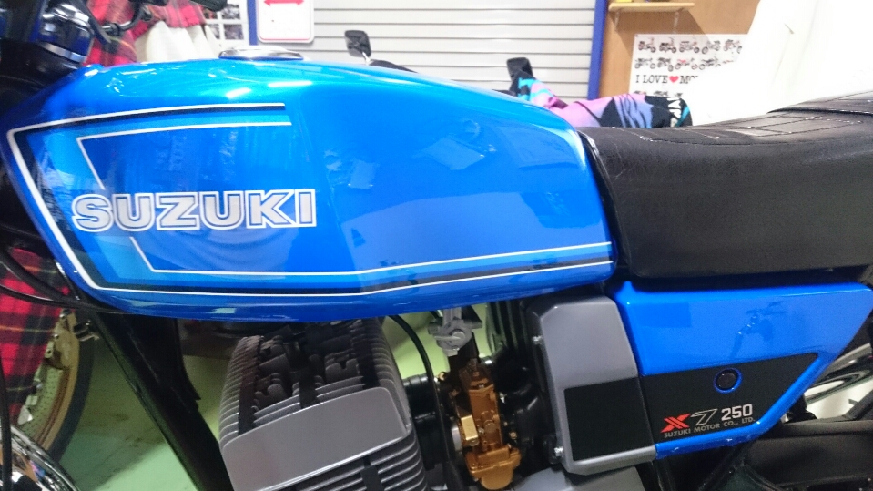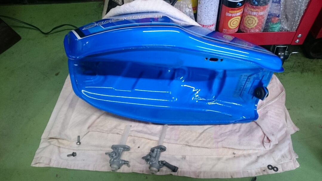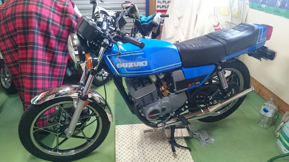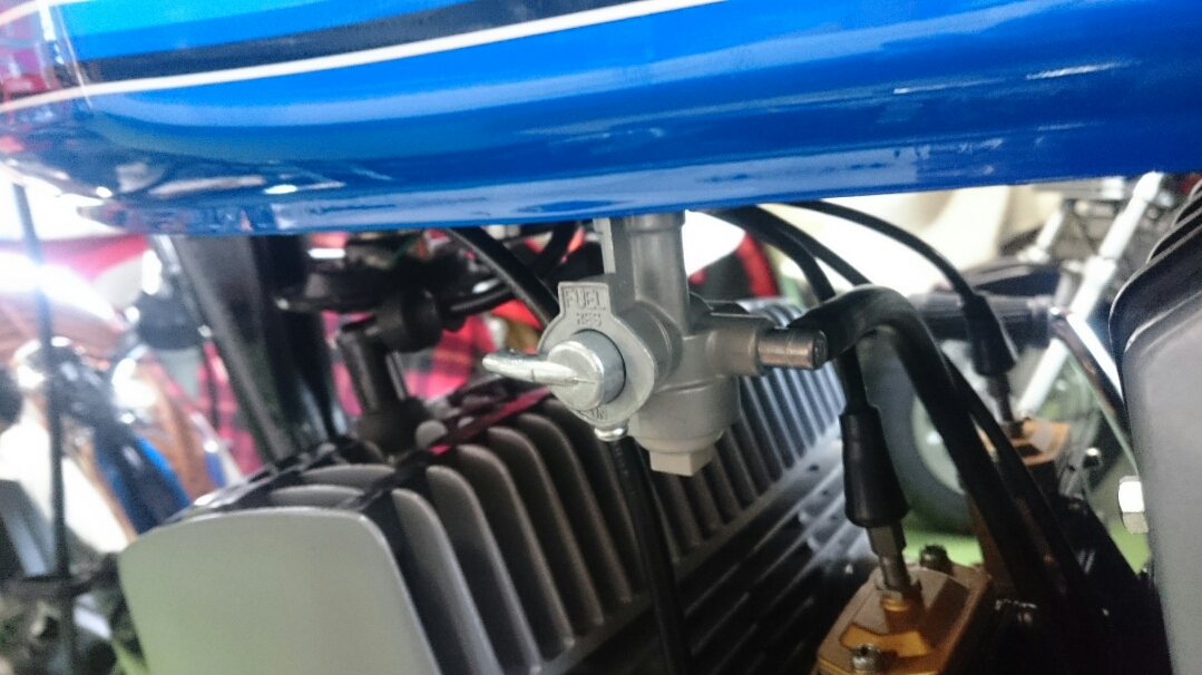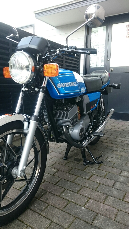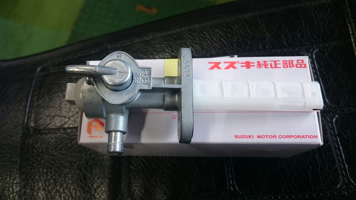 日常 2017/02/14 新たなお仲間.....初鈴菌です(*'ω'*) こんにちは、CEOです。今年初投稿になりますm(__)mさてさて、昨年末のことでありますが、新たなお仲間が入庫しました。自分にとって、初のスズキ車(鈴菌)であります。そのバイクとは.......................... スズキRG250E 1981年型であります(=゚ω゚)ノとある方からメールがきまして、お知り合いで欲しい方がいたら紹介願いますと.....紹介と言われましてもなかなかねぇ( ;∀;)てな訳で、自分が譲り受けることと相成りましたーーー(*‘ω‘ *)いや~、まさか続けて2ストマシンを手に入れることになるとは.....これも何かの巡りあわせとでも言うのでしょうねぇ(-ω-)/今までの2スト経験は高校生の小僧のころのカワサキKH400(高校卒業後、進学してその年の5月の連休に帰省したら、お袋が勝手に売却してた...ガックリ)東京で学生生活が終わる直前に発表、発売されたホンダMVX250F(V型3気筒でセンセーショナルなデビューも、直後にヤマハRZ250R、そしてトドメのスズキRG250Γがデビュー。一瞬にして不人気となったある意味ホンダ伝説のバイク)そんなことで、30数年ぶりの2ストでございます。しかし、増車はよろしくないので1台お嫁に出しました(ほぼ、押し売りでございます(;'∀'))所有期間、10ヶ月の........... トリッカーであります。(磐梯吾妻スカイラインに行った時の雄姿です)まぁ、新しいオーナーさんはこれを欲しがってたのでねぇ('ω')ノ新たなオーナーさんの下で活躍することでしょう!では、このRG250Eをおみせしましょう。 大変に程度バツグンの車両でございます(=゚ω゚)ノしかもノーマルではありません! ワンオフ!スリップオンスペシャルチャンバー! RG250Γ純正、フラットバルブキャブレター! ブレンボ対向2ポットキャリパー!ブレーキディスク、キャリパーサポートは一品物! 当時の輸出仕様のカラーリングにオールペン!このような仕様でありますので、自分は何の手を加えることなく乗るだけですー(^o^)丿そしてそして、走ってみた感想はというと(寒いのでチョイ乗りですけど)感動の速さですよ!息子のninja250と比べ物になりませんわ.....当時の中型バイクって、結構過激だったのですねぇ.....(;´・ω・)いや~、最高ッス!!しか~し、入庫数日後からガレージの中がなんか臭うんですなぁ???ガソリン臭ですよ~!よ~く確認してみると、キャブレターからオーバーフローてるぅ(/ω\)直すしかないっすよね、これ。ガソリン漏れるなんて危険きわまりないですから.....で、キャブレター外すんですけど、非常に外し憎いんでですわ。前オーナーさんから怪しいところをご教授頂きながら、なんだかんだと結局4回も取ったり付けたりと試行錯誤。 直った~!と思ってたら、翌日にはしっかりとオーバーフローしてやがる.....(ガックリ.....)なんなんじゃい!と思いながら又バラシかよ~と凹んでるときに気が付きました。燃料コックからガソリンホースを外して、危ないので外に出て一服(-。-)y-゜゜゜戻ってふと見るとなんか垂れてる?はい、ガソリンです!燃料コックOFFなのにガソリンが漏れる~?ははぁ、原因はこれかい!てな、予想を立てまして、さっそくおニューの燃料コックを注文。 なんと、35年も前のバイクのパーツがあっさり出てくる鈴菌様、素晴らしいです!パーツが来たところで、さっそく交換作業をします。ガソリン抜いて、タンク外してサクサクと。 交換作業、完了。後はオーバーフローするかどうかの確認で一晩様子を見ます。翌朝、恐る恐る見てみると、オーバーフローしてません~(*‘∀‘)結局、燃料コックが原因だったことが判明。解らんもんですね、キャブレター外したのがアホらしくなりましたが、これも貴重な経験と勉強をしたということで(;^ω^)次回、何らかのことでキャブレター外すことがあっても、楽勝?でしょう。 今は何事もなかったようにガレージで佇んでいるRG250Eであります。春が待ち遠しいですね!では、失礼致しますm(__)m にほんブログ村[10回]