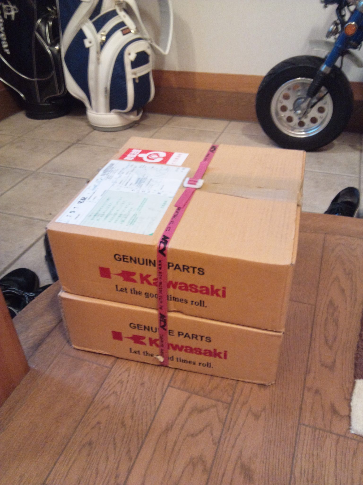 日常 2017/02/14 新たなお仲間.....初鈴菌です(*'ω'*) こんにちは、CEOです。今年初投稿になりますm(__)mさてさて、昨年末のことでありますが、新たなお仲間が入庫しました。自分にとって、初のスズキ車(鈴菌)であります。そのバイクとは.......................... スズキRG250E 1981年型であります(=゚ω゚)ノとある方からメールがきまして、お知り合いで欲しい方がいたら紹介願いますと.....紹介と言われましてもなかなかねぇ( ;∀;)てな訳で、自分が譲り受けることと相成りましたーーー(*‘ω‘ *)いや~、まさか続けて2ストマシンを手に入れることになるとは.....これも何かの巡りあわせとでも言うのでしょうねぇ(-ω-)/今までの2スト経験は高校生の小僧のころのカワサキKH400(高校卒業後、進学してその年の5月の連休に帰省したら、お袋が勝手に売却してた...ガックリ)東京で学生生活が終わる直前に発表、発売されたホンダMVX250F(V型3気筒でセンセーショナルなデビューも、直後にヤマハRZ250R、そしてトドメのスズキRG250Γがデビュー。一瞬にして不人気となったある意味ホンダ伝説のバイク)そんなことで、30数年ぶりの2ストでございます。しかし、増車はよろしくないので1台お嫁に出しました(ほぼ、押し売りでございます(;'∀'))所有期間、10ヶ月の........... トリッカーであります。(磐梯吾妻スカイラインに行った時の雄姿です)まぁ、新しいオーナーさんはこれを欲しがってたのでねぇ('ω')ノ新たなオーナーさんの下で活躍することでしょう!では、このRG250Eをおみせしましょう。 大変に程度バツグンの車両でございます(=゚ω゚)ノしかもノーマルではありません! ワンオフ!スリップオンスペシャルチャンバー! RG250Γ純正、フラットバルブキャブレター! ブレンボ対向2ポットキャリパー!ブレーキディスク、キャリパーサポートは一品物! 当時の輸出仕様のカラーリングにオールペン!このような仕様でありますので、自分は何の手を加えることなく乗るだけですー(^o^)丿そしてそして、走ってみた感想はというと(寒いのでチョイ乗りですけど)感動の速さですよ!息子のninja250と比べ物になりませんわ.....当時の中型バイクって、結構過激だったのですねぇ.....(;´・ω・)いや~、最高ッス!!しか~し、入庫数日後からガレージの中がなんか臭うんですなぁ???ガソリン臭ですよ~!よ~く確認してみると、キャブレターからオーバーフローてるぅ(/ω\)直すしかないっすよね、これ。ガソリン漏れるなんて危険きわまりないですから.....で、キャブレター外すんですけど、非常に外し憎いんでですわ。前オーナーさんから怪しいところをご教授頂きながら、なんだかんだと結局4回も取ったり付けたりと試行錯誤。 直った~!と思ってたら、翌日にはしっかりとオーバーフローしてやがる.....(ガックリ.....)なんなんじゃい!と思いながら又バラシかよ~と凹んでるときに気が付きました。燃料コックからガソリンホースを外して、危ないので外に出て一服(-。-)y-゜゜゜戻ってふと見るとなんか垂れてる?はい、ガソリンです!燃料コックOFFなのにガソリンが漏れる~?ははぁ、原因はこれかい!てな、予想を立てまして、さっそくおニューの燃料コックを注文。 なんと、35年も前のバイクのパーツがあっさり出てくる鈴菌様、素晴らしいです!パーツが来たところで、さっそく交換作業をします。ガソリン抜いて、タンク外してサクサクと。 交換作業、完了。後はオーバーフローするかどうかの確認で一晩様子を見ます。翌朝、恐る恐る見てみると、オーバーフローしてません~(*‘∀‘)結局、燃料コックが原因だったことが判明。解らんもんですね、キャブレター外したのがアホらしくなりましたが、これも貴重な経験と勉強をしたということで(;^ω^)次回、何らかのことでキャブレター外すことがあっても、楽勝?でしょう。 今は何事もなかったようにガレージで佇んでいるRG250Eであります。春が待ち遠しいですね!では、失礼致しますm(__)m にほんブログ村[10回]PR