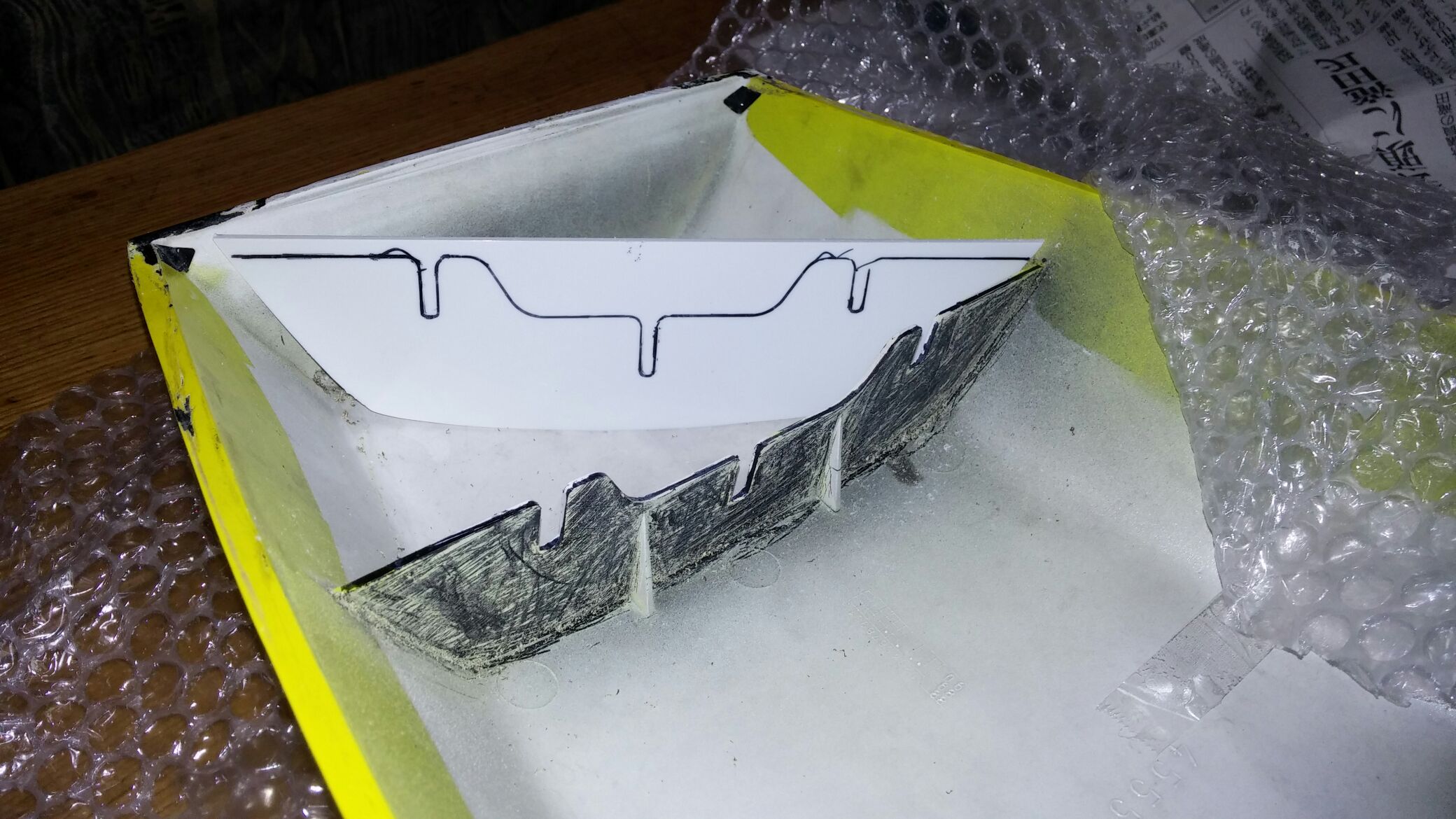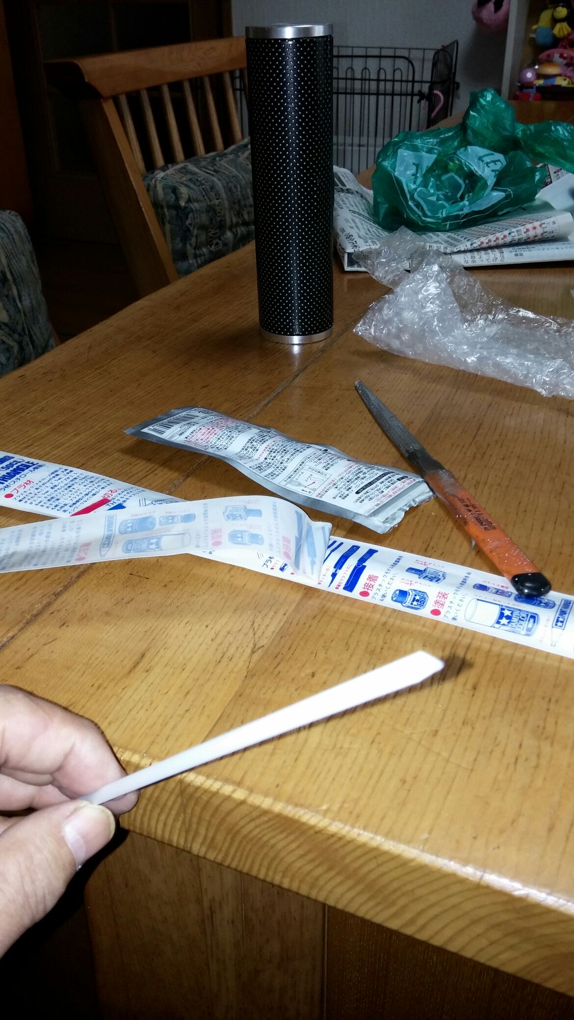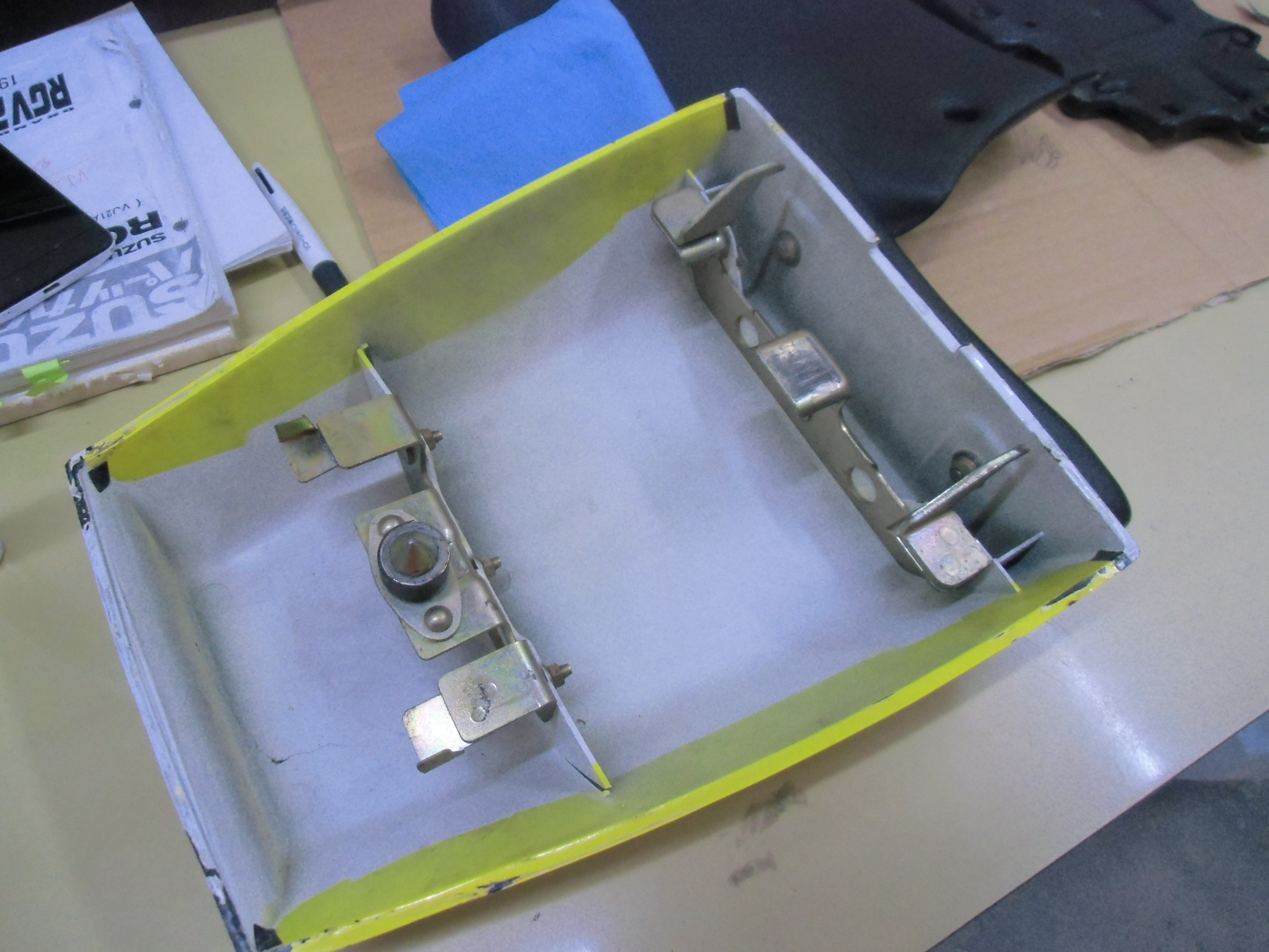 日常 2017/01/17 その道の方々・・・其の③ 新年あけましておめでとうございます。ようやく「後厄」から解放されたマッシーです。来年もいい年になるよう!ガツガツいきますよ(゚Д゚)ノ今回は昔からの知人にガンマのカウル補修を依頼した事を書きます。 シングルシートカウル(表) (裏面)パッと見は特に目立った割れ・キズ等は無さそうに見えますが・・・ よーく見てみると・・・割れています。(-_-;) ステーを外すと新たな割れを発見!しかももう1つのステーも同じく割れておりました。(-_-;) シートカウル(表) シートカウル(裏) シートカウルを外した瞬間!グロメットに差し込む部分が根元から折れてしまいました ( ゚Д゚)特にひどい割れ・欠けが無いので「瞬間接着剤で直るるだろう!」と簡単に思っていましたが、「やはり!しっかり直したい!」ならばあの人しかいない! ( ゚Д゚)その昔、以前乗っていたSR400のサイドカバーを希望通りのデザインでFRP「ワンオフ」製作していただいた知人の「工藤さん」とにかくFRP制作に関しては「スゴ腕」の持ち主であります。数年ぶりに電話して補修依頼しました。私「すみません!ガンマの純正カウルが割れているので、FRPで直して 欲しいのですが・・・」工藤さん「純正のカウルですよね?」私「そうですよ!」工藤さん「プラスチックにFRP素材は付きませんよ!」私「へっ?( ゚Д゚)」 知りませんでした・・・勝手にプラスチックイコールFRPと思い込んでいた私・・・改めて割れた箇所を、工藤さんに確認していただき「補修可能なので持ち帰ります!」と補修を引き受けてくれました。(#^.^#)しばらくして、工藤さんから私の携帯に写真が送られてきました。 タミヤの「プラ棒」を使って補修します。 炙って?プラ棒を曲げる 取れた部品の外側と同じ曲がりになるよう、さらに形を整えます。 プラスチック専用接着剤を使って取り付けます。続いてシートカウルステーの補修 元のステーを残し、新たに同じ形のステーをもう1枚作ります。 何とも細かい作業です。私には不向きな作業です・・・(-_-;) 専用接着剤を付け「洗濯バサミ」でしっかり圧着! 完成!(゚Д゚)ノ しかも新たなステーを取付ていただき補強してくれました。(゚Д゚)ノ後日 ここでようやくブログに「工藤さん」登場!補修終えたカウル類をガレージまで届けに来てくれました。早速フィッティング開始!シートカウルは問題なく取付ける事が出来、補修した部分の強度もバッチリ!これで「おそるおそる」外す必要なし(=゚ω゚)ノ しかし、シングルシートは、イマイチしっくりきません。隙間やガタもあるし・・・・(-_-;) 工藤さんがボルトを緩め前後ステー位置を調整します。調整した位置に線を引き目印とします。 付けては、外し、ステー位置調整を繰り返すこと数十回・・・・・ ようやく取り付け、取り外しに対して問題なく出来ました。ヽ(^。^)ノ強度もバッチリです。作業していただいた工藤さんから「一言・・・」「80年代は、そんなもん!ですよ!」まー確かに今から約28年前の物ですし・・・・(-_-;)本体のゆがみ・劣化もあるし・・・・(-_-;)現行車とは、造りも材質も進化していますし・・・・(-_-;)大変忙しい中、カウル補修していただきありがとうございました。ヽ(^。^)ノとても色々な勉強をさせていただきました。そして・・・・ここからが工藤さんの本領発揮! 知人のKV75 F・Rフェンダーとゼッケン後日、FRPにて純正と同じ形にワンオフ製作してもらいます(゚Д゚)ノ出来次第ブログアップいたします。 ガリ傷が痛々しいアンダーカウルこちらもステッカー補修依頼中です。「その道の方々・・・其の④」で出来次第アップいたします。今年もどーぞホテルバーデンブログにお付き合いください (*ノωノ) にほんブログ村[9回]