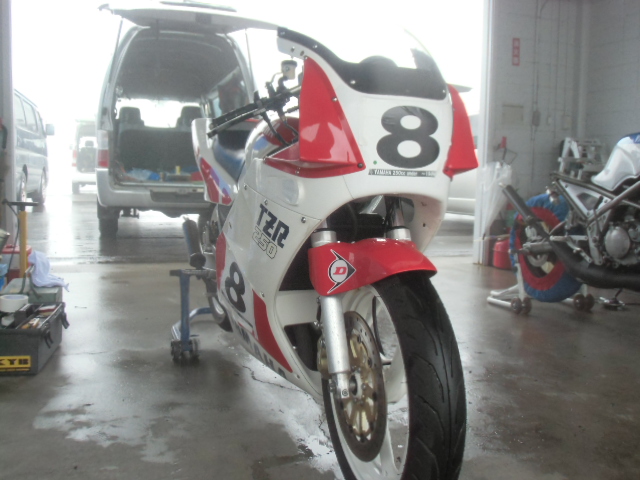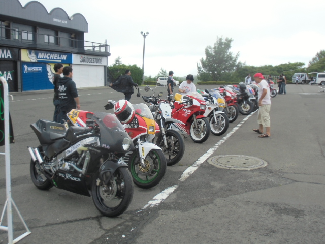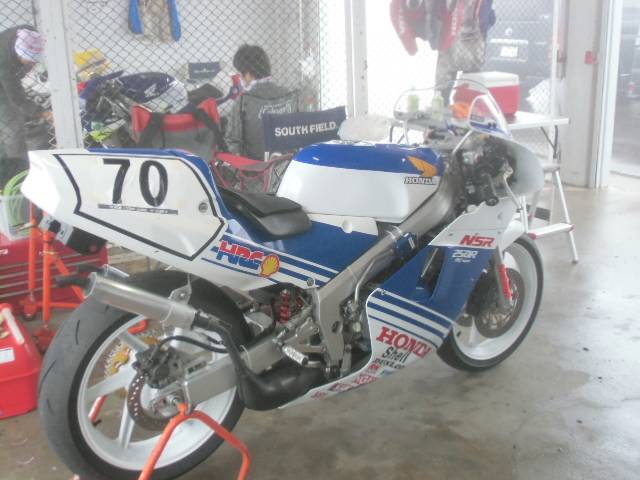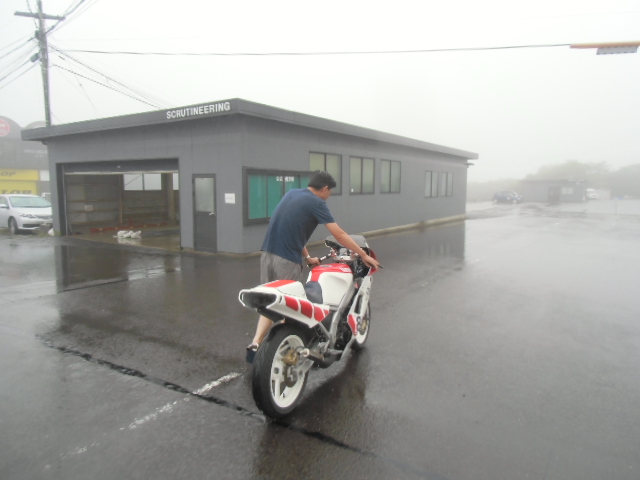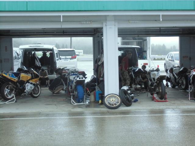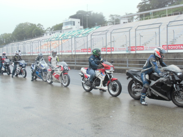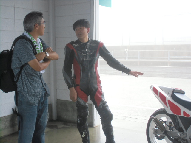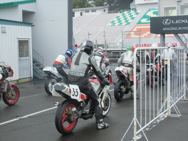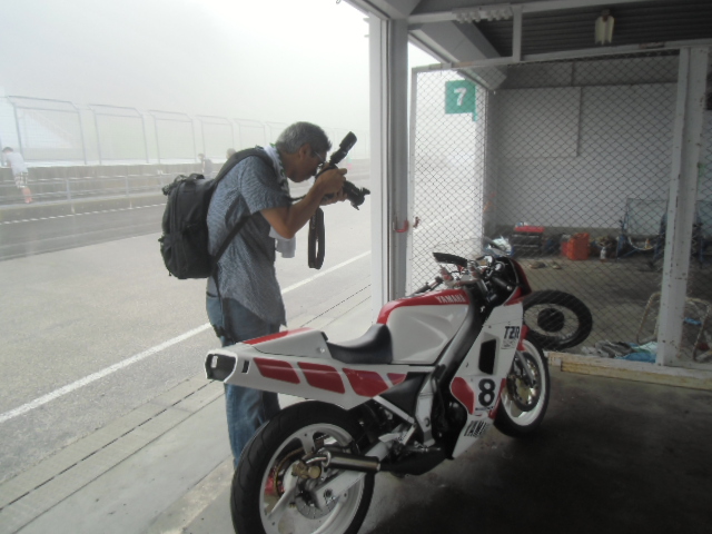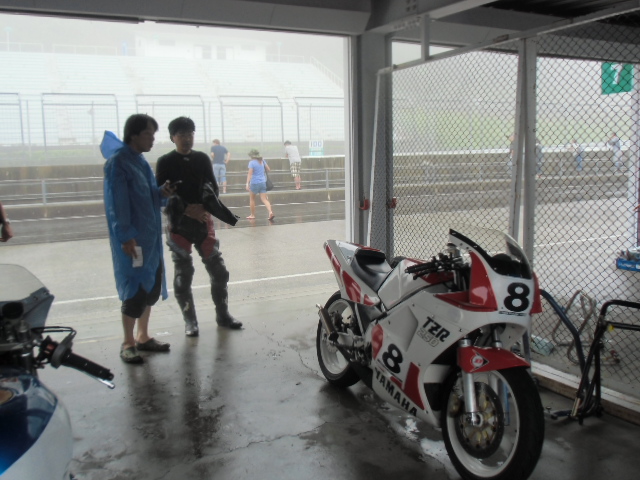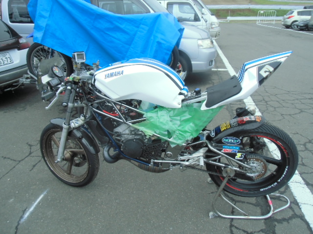 日常 2016/09/20 バリバリ こんにちは!マッシーです。先日、スポーツランドSUGOにて開催しました 「2-st Meeting」バイク仲間は、レースに参加! 参加車両:ヤマハTZR250 1KT私は、サポート役として行って来ました。 あいにくこの日は、朝から雨楽しいイベントも雨が降ると、楽しみも半減します (-_-;) ピットにバイクを下し メインストレートの方を見てみると、ご覧の通りまったく先が見えません。(-_-;)レース中止になるのか?心配でした。 先ず始めに「受付」をしてから 続いて「車両点検」の為、車検場へ向かう1KTさん! 各部チェックを受けます。特に問題も無くOK! タイムラップ等測る計測器を付け タイヤに空気を入れ、整備?終了 (-_-;) 悪天候の為、予定時刻の「予選走行」の時間が遅くなったので、私はデジカメを持ってブラブラとピットを歩き、久々に聞く2ストエンジン音を聞きながら、参加者の車両を撮影してました。 どれもこれも気合入りまくりの車両ばかり( ゚Д゚)でした。 天候は相変わらず最悪の状況ですが、 「予選走行」を終え、ピットに帰ってきた1KTさん「霧で全く前が見えん」( ゚Д゚)「タイヤが滑ってアクセル開けれん!」( ゚Д゚)などなど・・・・かなり不機嫌な様子(-_-;)無理もありません!”コースはウエットコンディションなのに、「レインタイヤ」を履いていないのですから・・・・(-_-;)予選結果は、1位の方は、ベストタイム「2’00.164」 に対し1KTさんは、16台出走中 14位 ベストタイム「2’48.609」休憩をしていると、バイク雑誌「Zeppan」編集長 栗田さんと遭遇!(#^^#)雑誌取材に来たとの事なので、1KTさんのTZRを撮影! 「年式の割りにカウル等の劣化が無い」などなど驚いておりました。 同じくバイク雑誌「ロードライダー」様からも取材を受ける1KTさんどのような感じで雑誌に掲載されるか?楽しみです。 駐車場ではNSRを展示しておりました。 やっぱりNSRはカッコイイ~です。 ロードライダー様による撮影会も行われておりました。 何だか( ゚Д゚)凄いことになってます! 気づいている方もいらっしゃると思いますが・・・・この時点で雨も上がり、場所によっては乾いてる所も・・・・・午後の「模擬レース」は、1KTさんのも勝機あり?駐車場を歩いていると、またまたいい感じの車両を発見! これまたそそられる車両です。( ゚Д゚) 「直キャブ」仕様! 雨の侵入を防ぐ為養生テープ応急処置! 「模擬レース」開始1時間前にまたしても雨が降り出しました( ゚Д゚)これには1KTさんもガッカリ(-_-;) サーキットコースでは、「体験走行」のイベントが始まろうとしておりました。今となっては新鮮な光景です。(#^^#) そして!いよいよ1KTさんの出番です。「模擬レース」の為コースへ向かう参加者達・・・果たして結果は・・・・・? 予想通り? 最下位でした。(-_-;)転ばず無事ピットに帰って来たので、良かったです (*ノωノ)来年リベンジしますか? 1KTさん (-。-)y-゜゜゜後日、無性に、あの漫画を読みたくなり、買ってしまいました。 バリ伝!(>_<) 個人的に大好きなシーン!のセリフ「好きなバイクを選ばせてもらうぜ」「これがいい CB750F」こんなセリフ言ってみて~! (-。-)y-゜゜゜ にほんブログ村[3回]