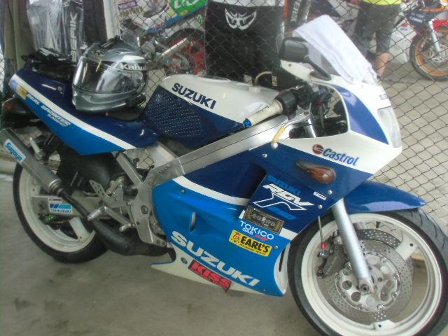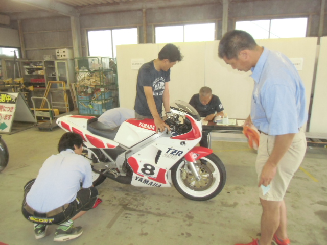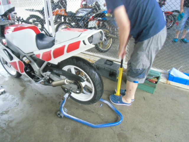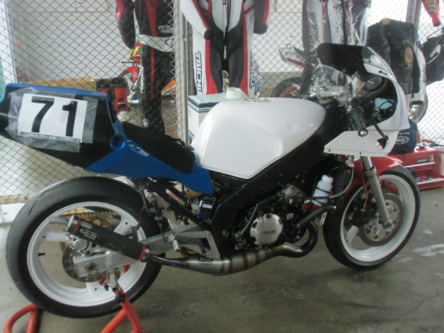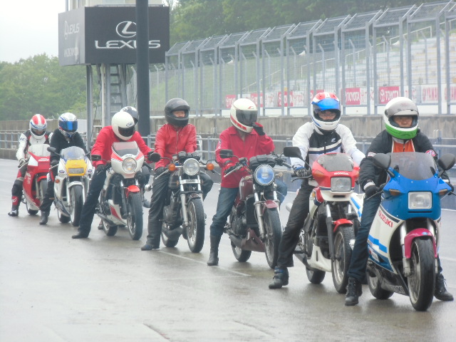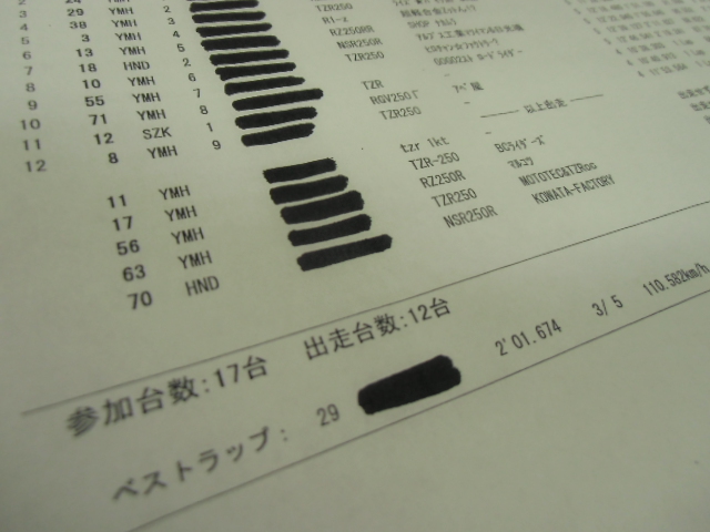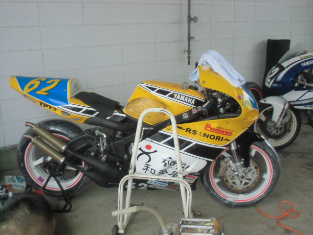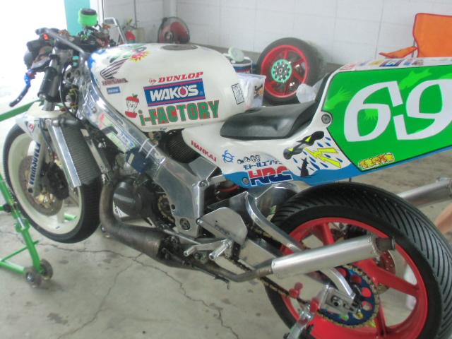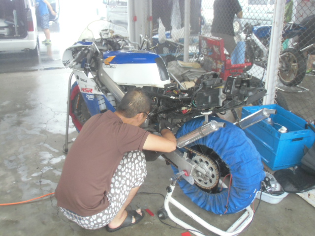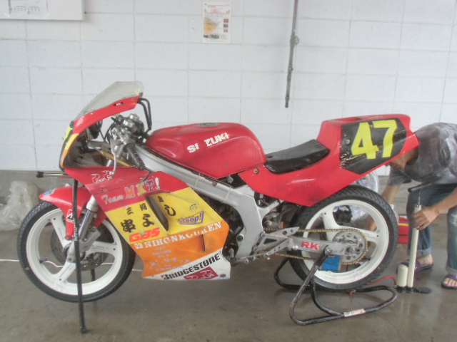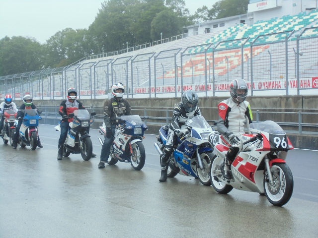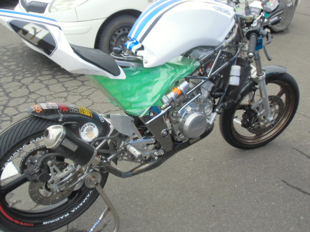 日常 2016/09/20 バリバリ こんにちは!マッシーです。先日、スポーツランドSUGOにて開催しました 「2-st Meeting」バイク仲間は、レースに参加! 参加車両:ヤマハTZR250 1KT私は、サポート役として行って来ました。 あいにくこの日は、朝から雨楽しいイベントも雨が降ると、楽しみも半減します (-_-;) ピットにバイクを下し メインストレートの方を見てみると、ご覧の通りまったく先が見えません。(-_-;)レース中止になるのか?心配でした。 先ず始めに「受付」をしてから 続いて「車両点検」の為、車検場へ向かう1KTさん! 各部チェックを受けます。特に問題も無くOK! タイムラップ等測る計測器を付け タイヤに空気を入れ、整備?終了 (-_-;) 悪天候の為、予定時刻の「予選走行」の時間が遅くなったので、私はデジカメを持ってブラブラとピットを歩き、久々に聞く2ストエンジン音を聞きながら、参加者の車両を撮影してました。 どれもこれも気合入りまくりの車両ばかり( ゚Д゚)でした。 天候は相変わらず最悪の状況ですが、 「予選走行」を終え、ピットに帰ってきた1KTさん「霧で全く前が見えん」( ゚Д゚)「タイヤが滑ってアクセル開けれん!」( ゚Д゚)などなど・・・・かなり不機嫌な様子(-_-;)無理もありません!”コースはウエットコンディションなのに、「レインタイヤ」を履いていないのですから・・・・(-_-;)予選結果は、1位の方は、ベストタイム「2’00.164」 に対し1KTさんは、16台出走中 14位 ベストタイム「2’48.609」休憩をしていると、バイク雑誌「Zeppan」編集長 栗田さんと遭遇!(#^^#)雑誌取材に来たとの事なので、1KTさんのTZRを撮影! 「年式の割りにカウル等の劣化が無い」などなど驚いておりました。 同じくバイク雑誌「ロードライダー」様からも取材を受ける1KTさんどのような感じで雑誌に掲載されるか?楽しみです。 駐車場ではNSRを展示しておりました。 やっぱりNSRはカッコイイ~です。 ロードライダー様による撮影会も行われておりました。 何だか( ゚Д゚)凄いことになってます! 気づいている方もいらっしゃると思いますが・・・・この時点で雨も上がり、場所によっては乾いてる所も・・・・・午後の「模擬レース」は、1KTさんのも勝機あり?駐車場を歩いていると、またまたいい感じの車両を発見! これまたそそられる車両です。( ゚Д゚) 「直キャブ」仕様! 雨の侵入を防ぐ為養生テープ応急処置! 「模擬レース」開始1時間前にまたしても雨が降り出しました( ゚Д゚)これには1KTさんもガッカリ(-_-;) サーキットコースでは、「体験走行」のイベントが始まろうとしておりました。今となっては新鮮な光景です。(#^^#) そして!いよいよ1KTさんの出番です。「模擬レース」の為コースへ向かう参加者達・・・果たして結果は・・・・・? 予想通り? 最下位でした。(-_-;)転ばず無事ピットに帰って来たので、良かったです (*ノωノ)来年リベンジしますか? 1KTさん (-。-)y-゜゜゜後日、無性に、あの漫画を読みたくなり、買ってしまいました。 バリ伝!(>_<) 個人的に大好きなシーン!のセリフ「好きなバイクを選ばせてもらうぜ」「これがいい CB750F」こんなセリフ言ってみて~! (-。-)y-゜゜゜ にほんブログ村[3回]