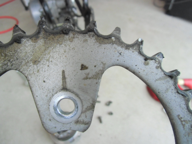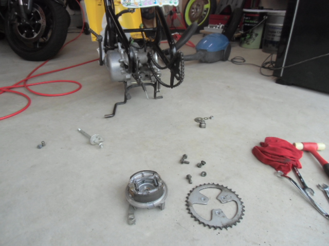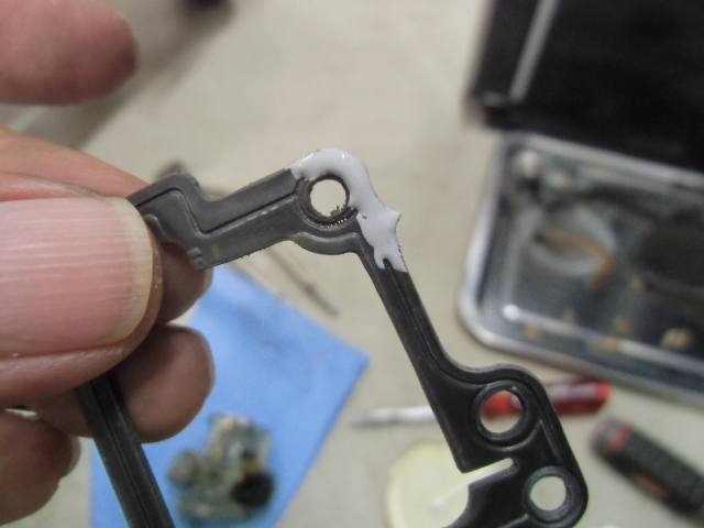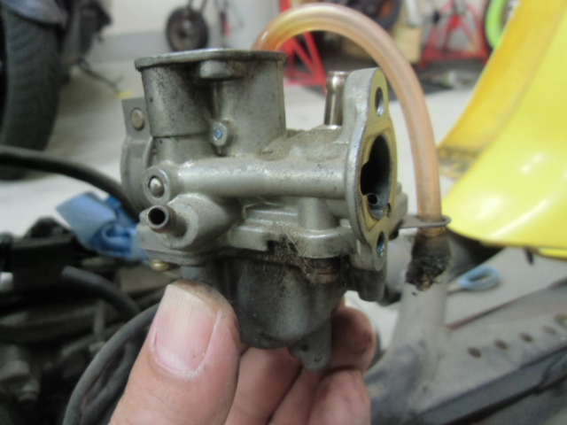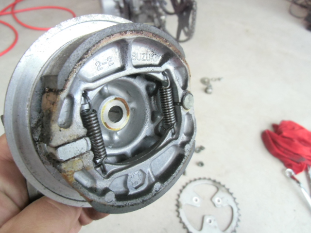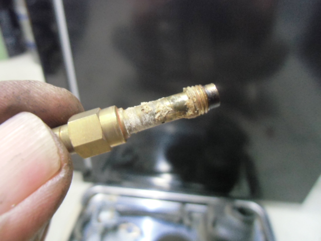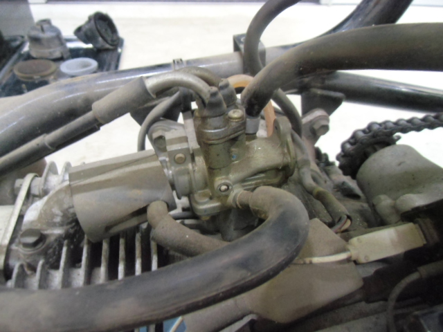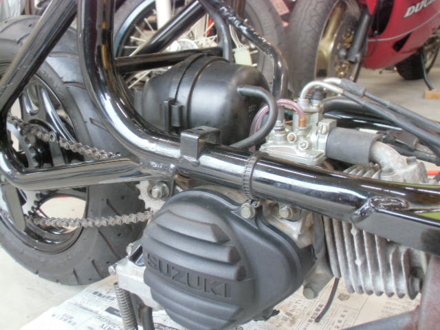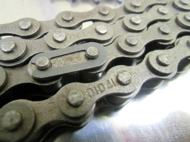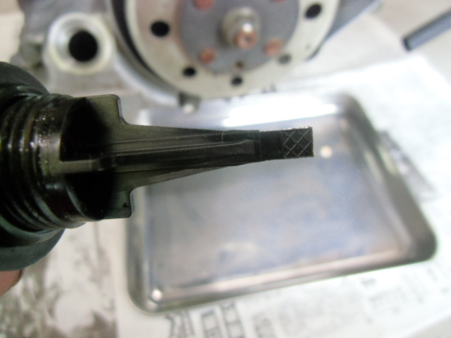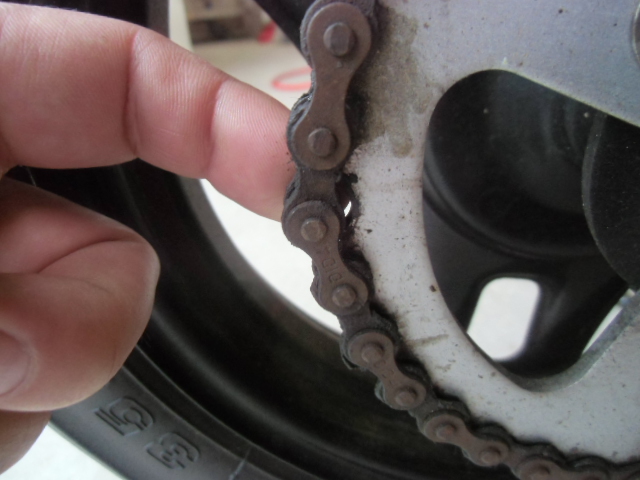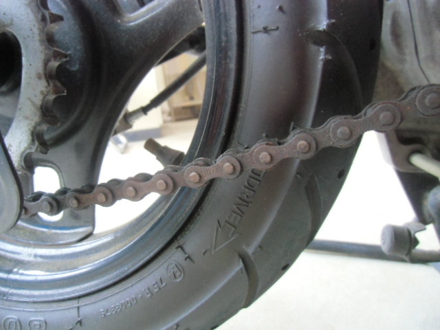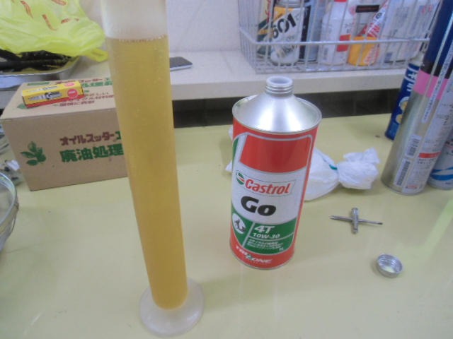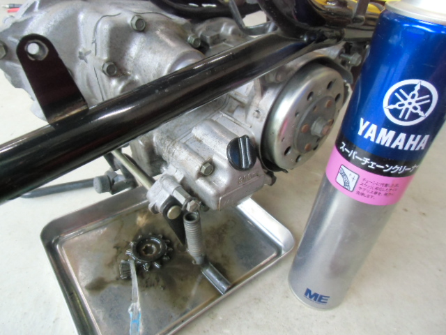 日常 2016/09/23 ガムテープって・・・ こんにちは!マッシーです。いつもお世話になっている知人から「エンジンの始動がイマイチ?なので、見てくれ!」との依頼がありそのバイクを引き上げガレージへと運びました。 皆さん!このバイク覚えてますか? まず基本中の基本 エアークリーナーの確認汚れ&劣化が酷く使い物になりません。(-_-;)新品と交換します。 エアークリーナーBOXの中には・・・・・(-_-;)お約束の光景です。 オイル?でギタギタに汚れていたので洗浄しました。 次にキャブレターの確認外す前にドレンからガソリンを抜くと、茶色いサビ?が・・・・ 「腐ってない」事を祈りつつキャブを外しました。ボディーはかなり汚れていますが、 キャブレターの中は思ったほど状態は良かったです。 ピストンバルブは黒く汚れており ニードルジェットは、腐っていました (-_-;) フロート室のこんな所にもジェット類が埋め込んでありました。 フロートパッキンの一部が破けていたので、 耐ガソリンガスケットを付け再利用 各部洗浄&規定値に調整して終了! ケースはドロドロに汚れいます。 チェーンライン&エンジンオイル注入口もドロドロなので、洗浄します。 少しチェーンが伸びているのか?引っ張るとガタが・・・・ チェーンの遊びもかなりある感じ?です。 Rタイヤを外して各部確認 ブレーキ関係は特に問題ありませんでした。 Rスプロケ&チェーンは使えそうなので、洗浄して再利用 ドロドロだったチェーンも頑張って1個1個丁寧に磨きました。DID41!チェーン 初めて見ました。 念の為チェーン使用限度値を測定します。 チェーン21ピン間の長さが、259mm以下であればOKの事このチェーンは値内でした。 スーパーゾイルチェーンルブを塗り終了。 ドライブスプロケシャフトもドロドロオイルシールが逝ってない事を祈りつつ洗浄 チェーンクリーナを吹きかけひたすら磨きます。上から流れて落ちたクリーナーをパレットで受け、溜まったクリーナでDスプロケを磨きます。 何とかここまで綺麗になりました。(*´Д`) 元通り組み上げR回り終了(-。-)y-゜゜゜ 続いてオイル交換します。オイルゲージを確認すると、オイルが付着してません。とりあえずオイルを抜いてみると 墨汁でした(-_-;) メスシリンダーで300㏄を測り フレッシュなオイルを投入! キャブを組み 新しいエアーフィルターを付け カブリ気味なプラグを新品に交換してキック数回蹴る事 難なくエンジン始動!した数分後、 オーバーフロー (-_-;)しました。 何故・・・・? もう一度キャブをバラシ油面確認!しましたが、特に問題なし(-_-;) 念には念をで目視で確認!問題なし 「油洗」の為に先程入れたオイルを抜き再度新しいオイルを入れます。 エンジンが温まったところで、エアーとアイドリングスクリューを微調整!オーバーフローも治りました。(#^^#)すこぶる調子がイイ!です。もうお解りの人もいると思いますが、今回メンテしたバイク新しい仕組みなどが満載でとても楽しくメンテできました。(#^^#) スズキ 「チョイノリ」企業努力!で車体価格¥59,800と破格値での販売に当時ビックリ( ゚Д゚)したことを思い出します。企業努力の証を発見! フロントウィンカーの配線を、ガムテープで止めてありました。(-。-)y-゜゜゜ にほんブログ村[5回]